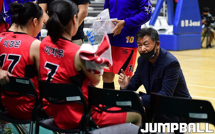[점프볼=수원/박상혁 기자] 29일 서수원칠보체육관에서 열린 2020 KUSF 대학농구 U-리그 부산대와 전주비전대의 여대부 결승전 경기, 부산대 이준호 감독이 선수들에게 지시를 내리고 있다.