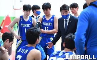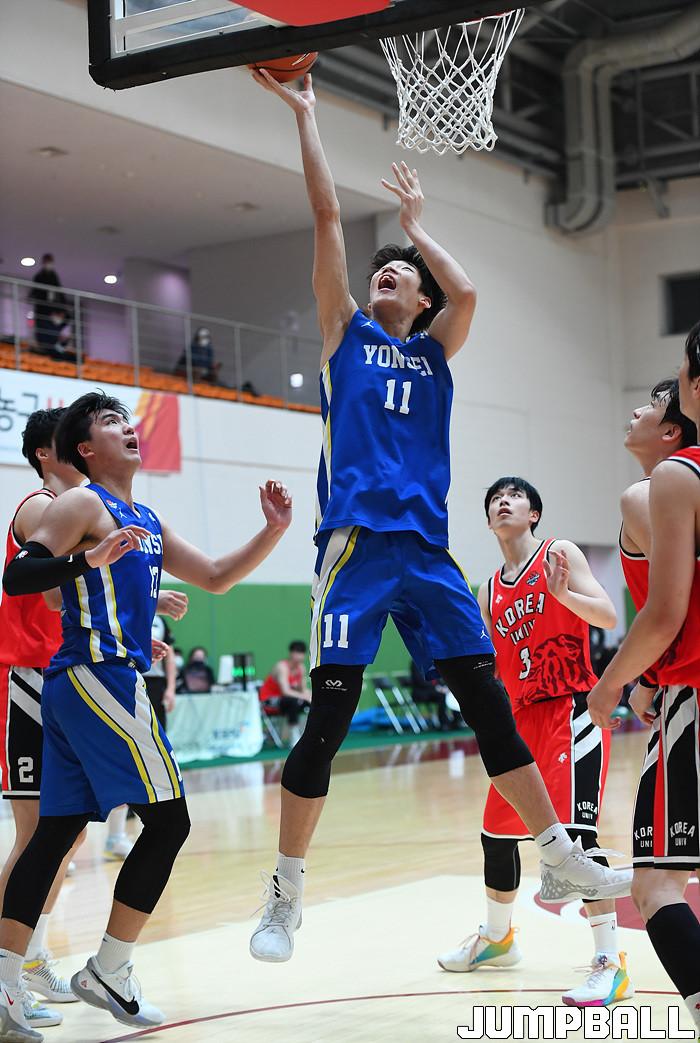 [점프볼=이천/문복주기자] 18일 경기도 이천 LG챔피언스파크에서 열린 2020 KUSF 대학농구 U-리그 남대부 결승전으로 고려대와 연세대의 경기, 연세대 이원석이 공격리바운드로 득점하고 있다.