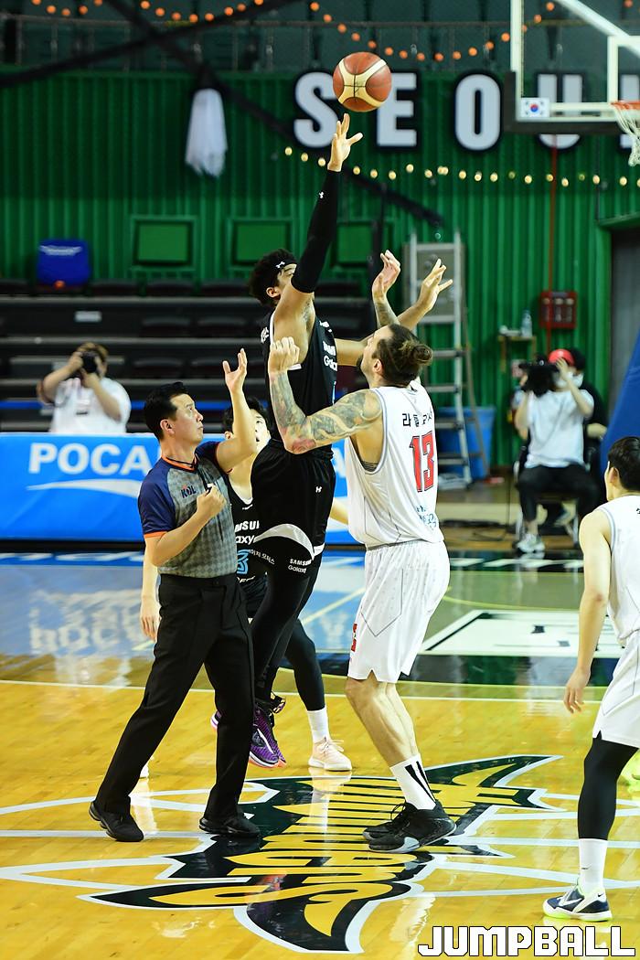 30일 잠실실내체육관에서 열린 2021-2022 KGC인삼공사 정관장 프로농구 서울 삼성과 고양 오리온의 경기, 점프볼로 경기가 시작되었다.