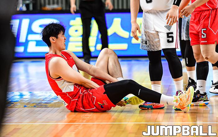 14일 경상북도 상주시 상주실내체육관에서 열린 2021 MG새마을금고 KBL컵 대회 고양 오리온과 안양 KGC인삼공사의 경기, 오리온 이정제가 경기 중 발목 부상을 당했다.