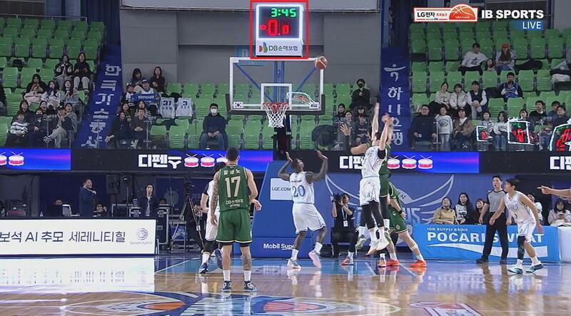 에삼 무스타파가 2쿼터 3분 45초를 남기고 24초 부저 소리와 함께 돌파 득점을 성공했다.