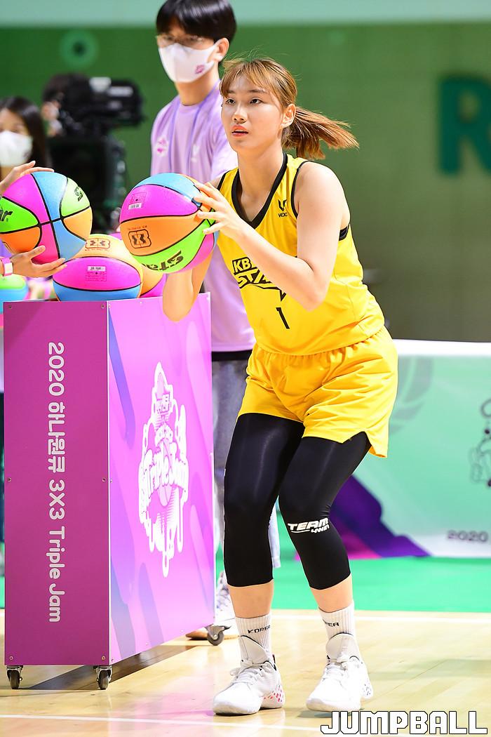 [점프볼=청라/박상혁 기자] 21일 인천 서구 하나글로벌캠퍼스에 위치한 하나은행 연습체육관에서 열린 '2020 하나원큐 3X3 TRIPLE JAM (트리플잼)' 1차 대회 2점슛 컨테스트 결선, KB스타즈 이윤미가 2점슛을 시도하고 있다.