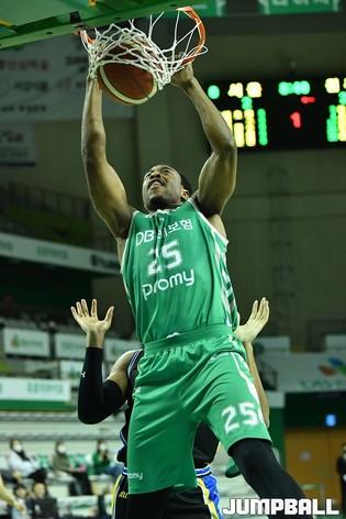 [점프볼=원주/유용우 기자] 27일 원주 종합체육관에서 열린 2020-2021 현대모비스 프로농구 원주 DB와 서울 삼성의 경기, DB 김종규가 골밑으로 파고 들고 있다.