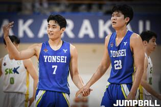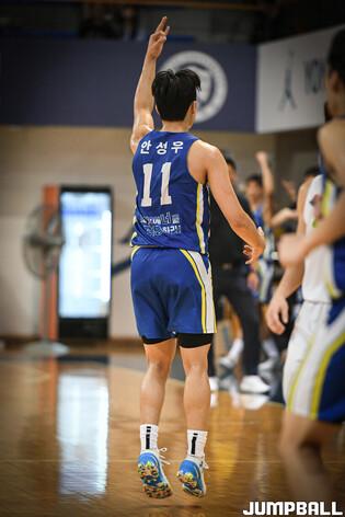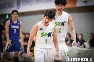 11일 연세대학교 신촌캠퍼스 체육관에서 열린 2023 KUSF 대학농구 U-리그 연세대와 성균관대의 경기, 성균관대 구인교가 점프슛을 시도하고 있다.