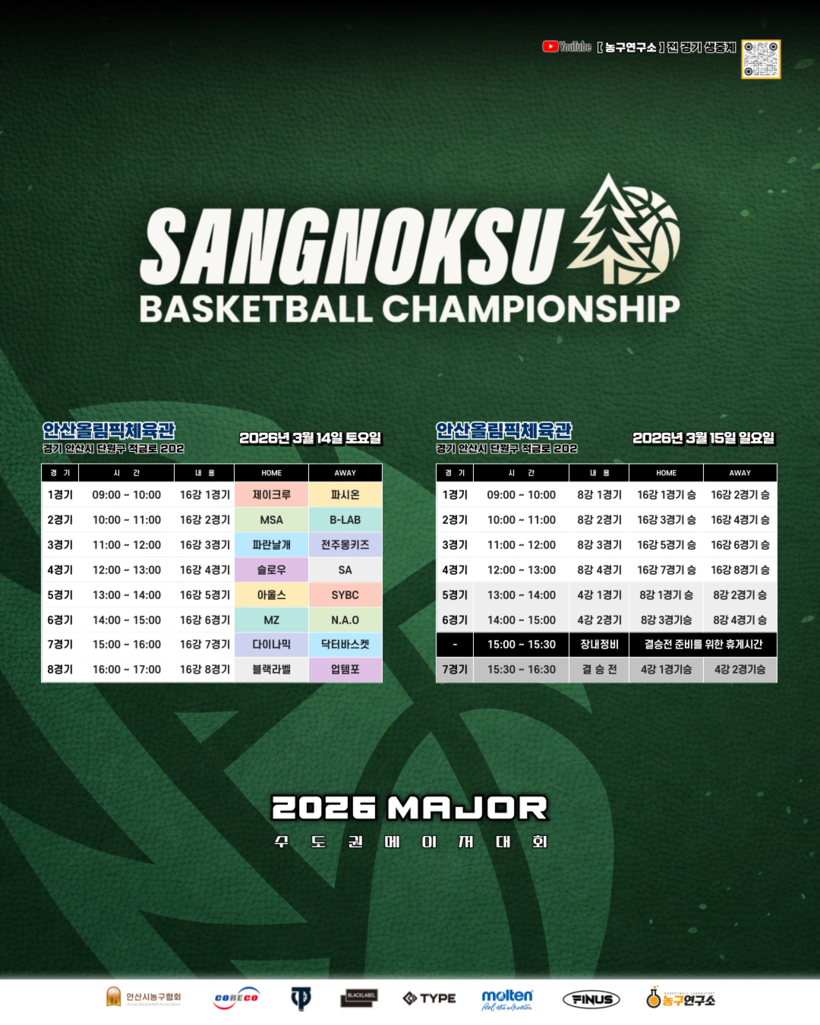 안산시농구협회가 주최 및 주관하는 ‘2026 안산시 상록수배 동호인 최강자전 농구대회’가 7일 경기 안산시 일대에서 개막했다. 32개 팀이 참가해 자웅을 겨루는 이번 대회는 7일과 8일 예선을 거쳐 14일과 15일 본선 일정으로 종료된다.