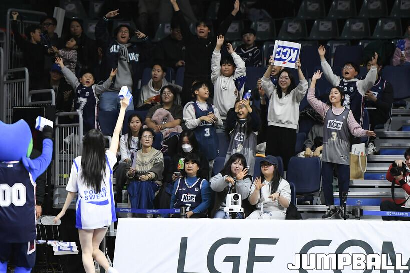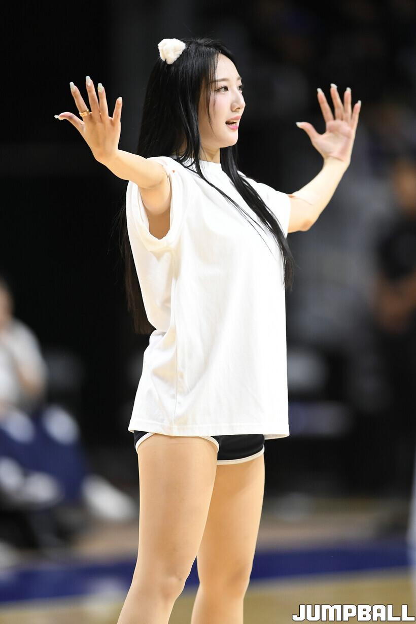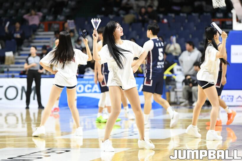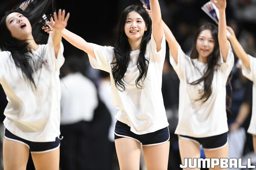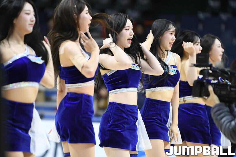 [점프볼=부산/유용우 기자] 14일 부산 사직실내체육관에서 열린 2025-2026 LG전자 프로농구 부산 KCC와 안양 정관장의 경기, KCC 치어리더들이 응원전을 펼치며 팀 승리를 염원하고 있다.