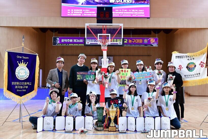 온양동신초는 14일 경남 통영체육관에서 열린 '윤덕주배 제36회 연맹회장기 전국 남녀초등학교 농구대회' 여자 초등부 결승에서 인천연학초를 29-26으로 따돌리고 우승했다. 동신초는 이 우승과 함께 2024년 협회장기, 종별대회, 청양고추·구기자배까지 4관왕을 달성했다.