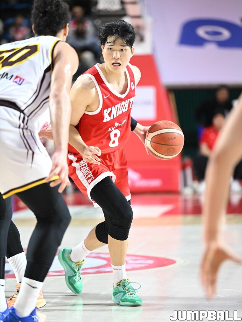 이날 SK는 안성우-문가온-김형빈-김명진-워니로 이어지는 변칙 라인업을 내세웠다. 팀에 부상자가 너무 많아 주축 멤버들의 체력 안배를 위해서였다. 예상외로 이들은 잘 버텼다. 덕분에 SK는 14-19로 크게 뒤지지 않은 채 1쿼터를 마쳤다. 안영준도 휴식 시간을 더 벌 수 있었다.