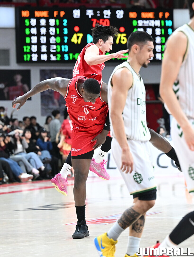 안양 정관장은 18일 안양 정관장 아레나에서 열린 원주 DB와의 2025-2026 LG전자 프로농구 정규시즌 홈경기에서 89-59로 승리했다. 2연패 위기에서 벗어난 정관장은 공동 3위에서 공동 2위로 올라섰다.