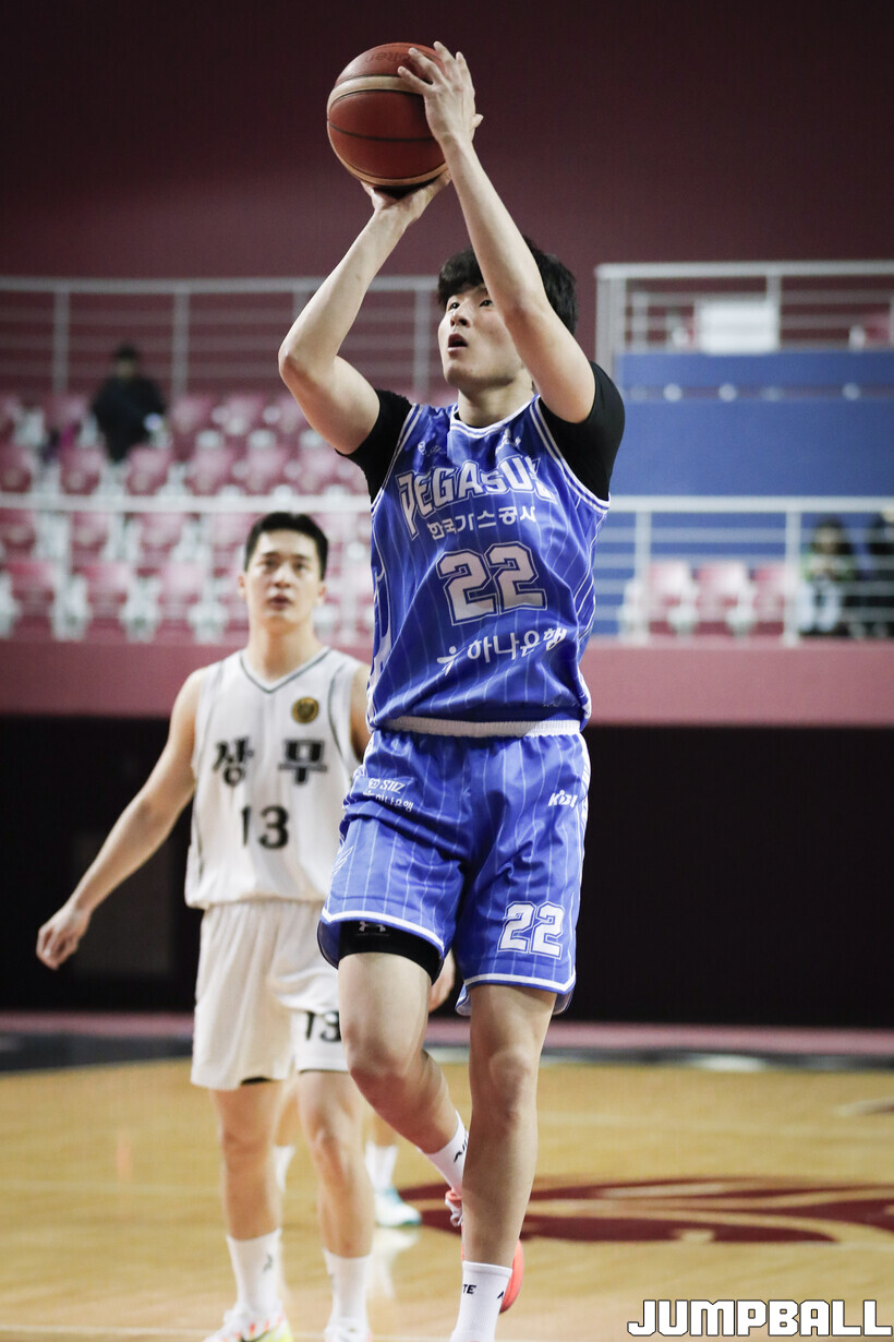 [점프볼=용인/양윤서 인터넷기자] 10일 경희대학교 국제캠퍼스 선승관에서 열린 2025-2026 KBL D리그 대구 한국가스공사와 상무의 경기, 한국가스공사 우상현이 미들슛을 시도하고 있다.