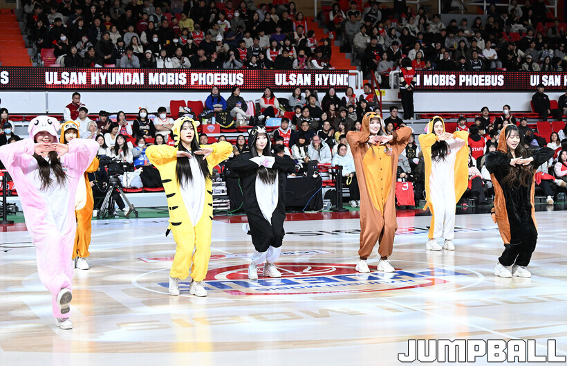 [점프볼=울산/문복주 기자] 8일 울산동천체육관에서 열린 2025~2026 LG전자 프로농구 울산 현대모비스와 대구 한국가스공사의 경기에 현대모비스 피버스걸 스페셜 공연을 펼쳤다.