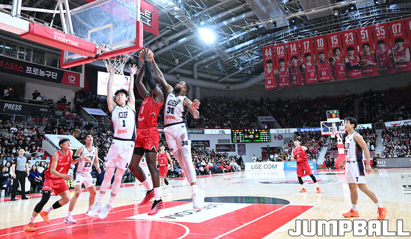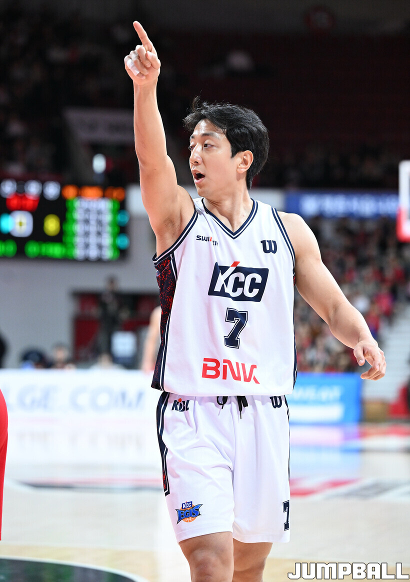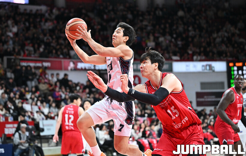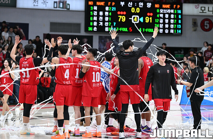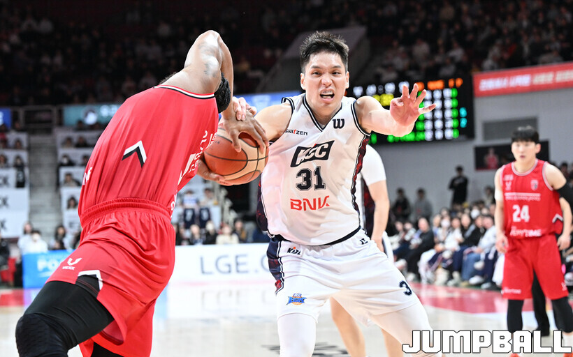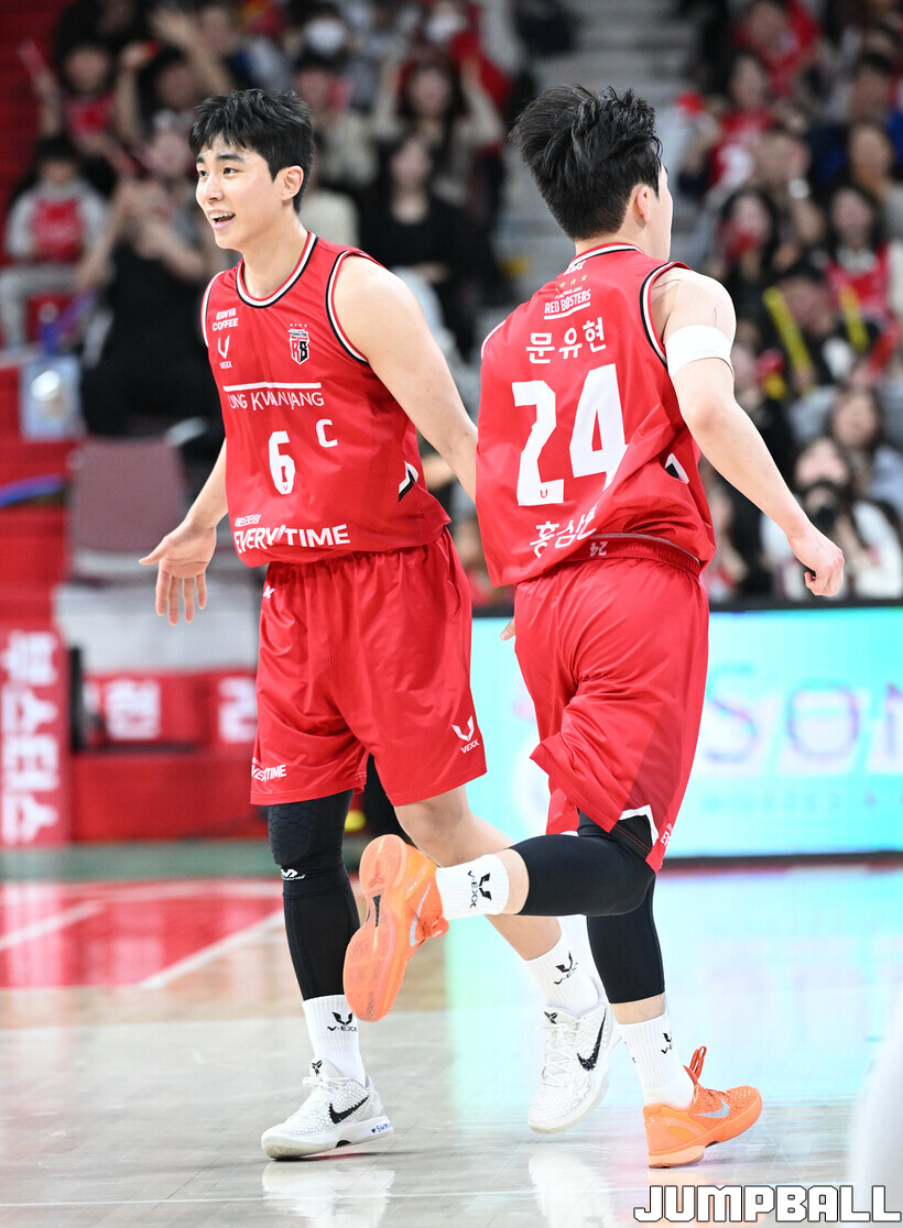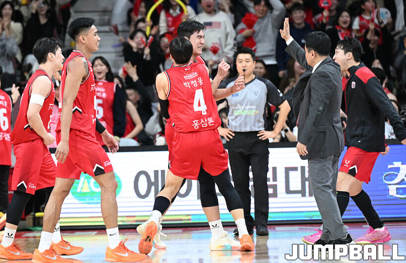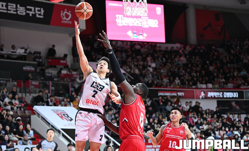 [점프볼=안양/문복주 기자] 안양 정관장은 7일 안양 정관장 아레나에서 열린 2025-2026 LG전자 프로농구 정규시즌 부산 KCC와의 맞대결에서 91-79로 승리했다. 정관장의 박지훈(22점 5어시스트 5리바운드)가 최다 득점을 기록했고, 조니 오브라이언트(16점)와 한승희(14점 3점슛 3개)가 후반에서 힘을 내며 승리로 이끌었다.