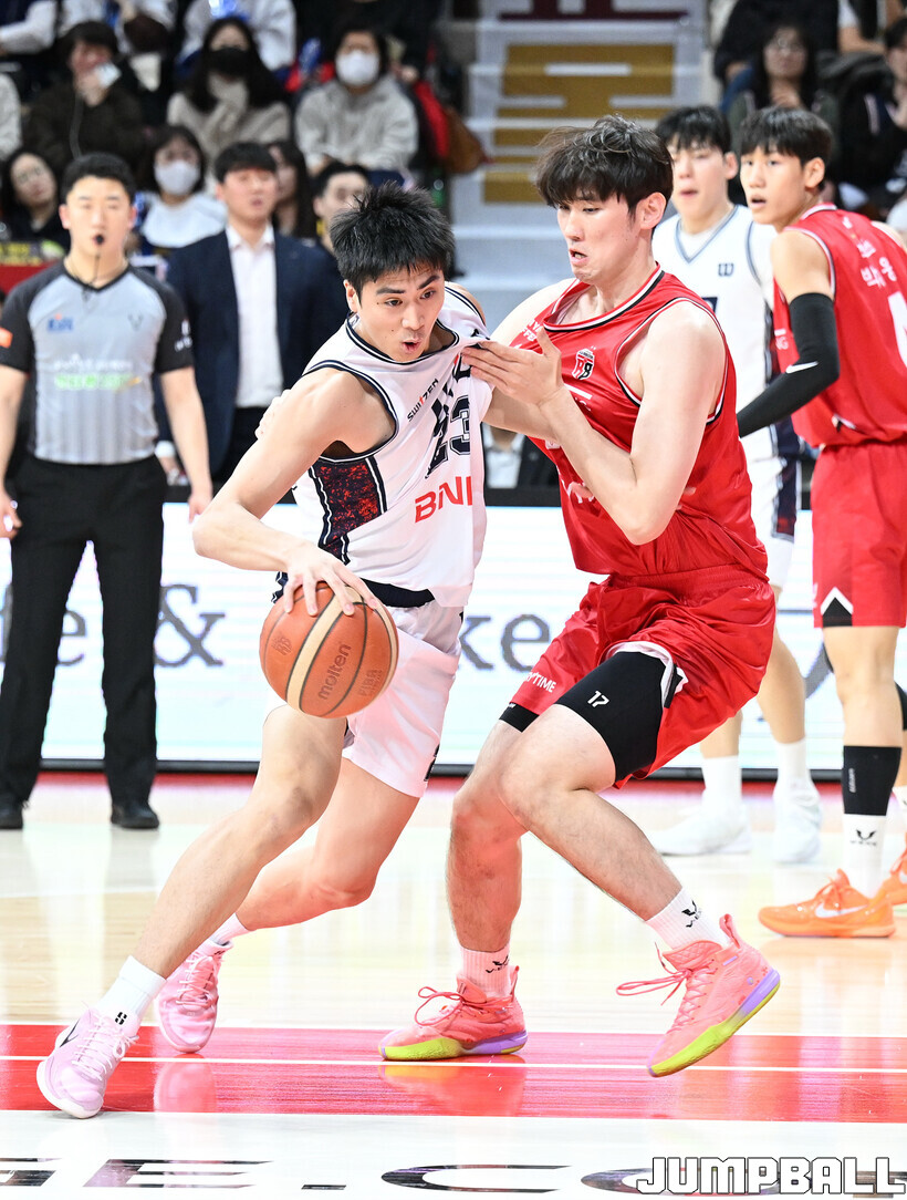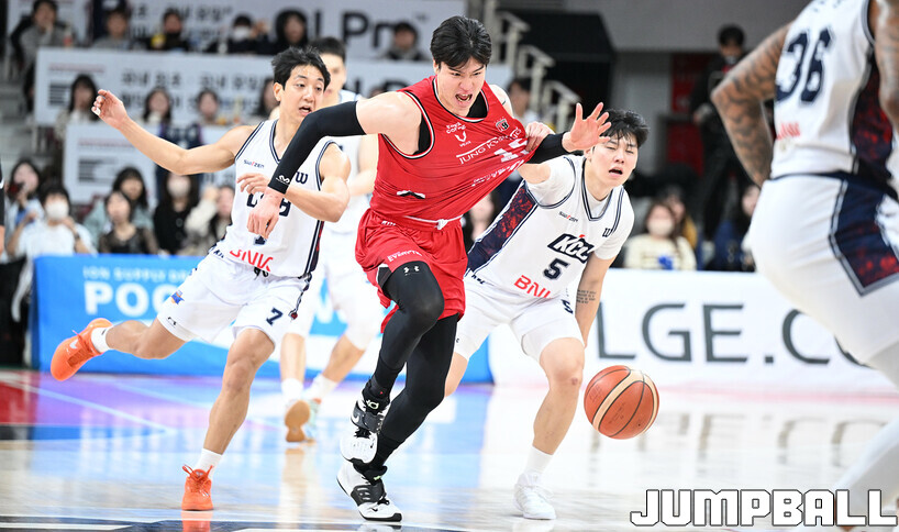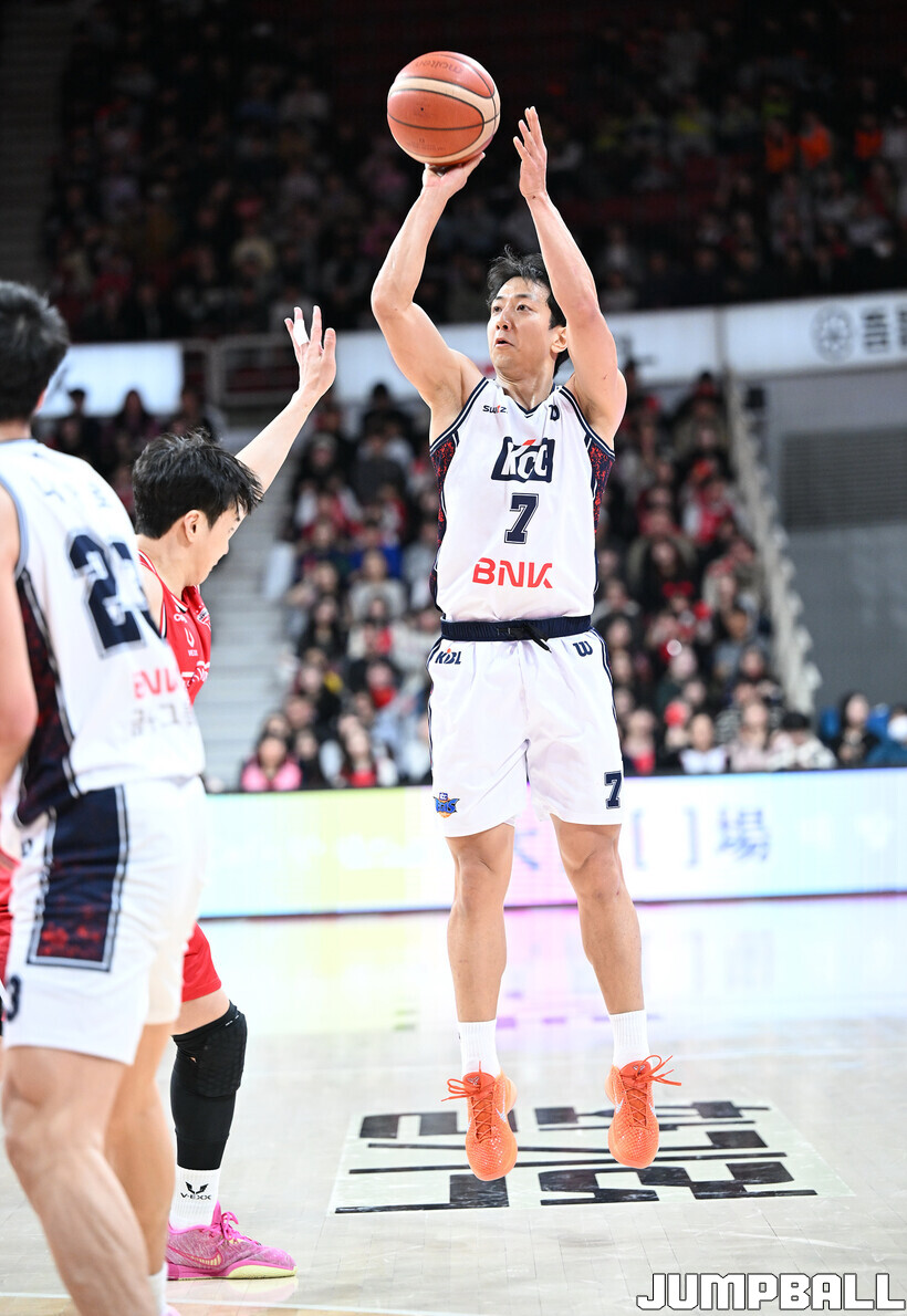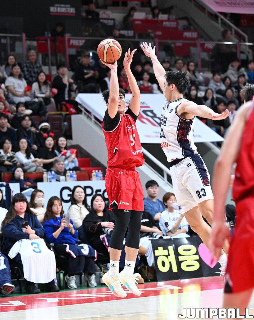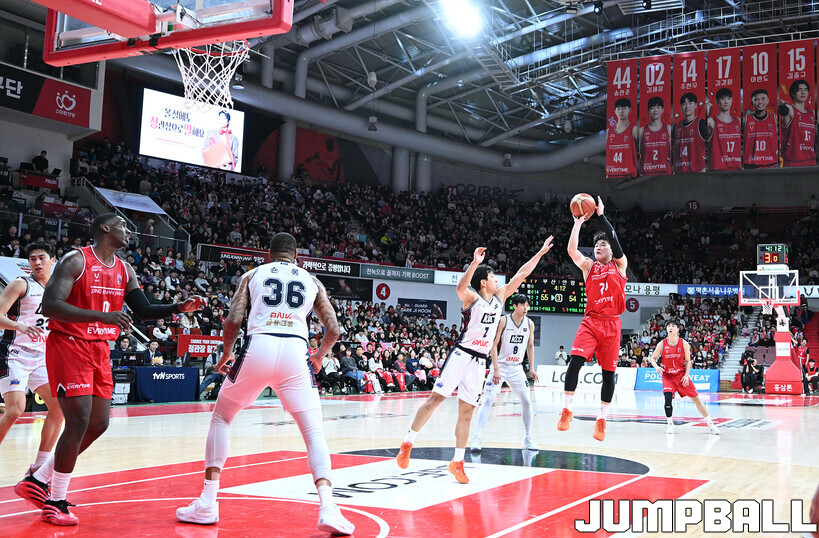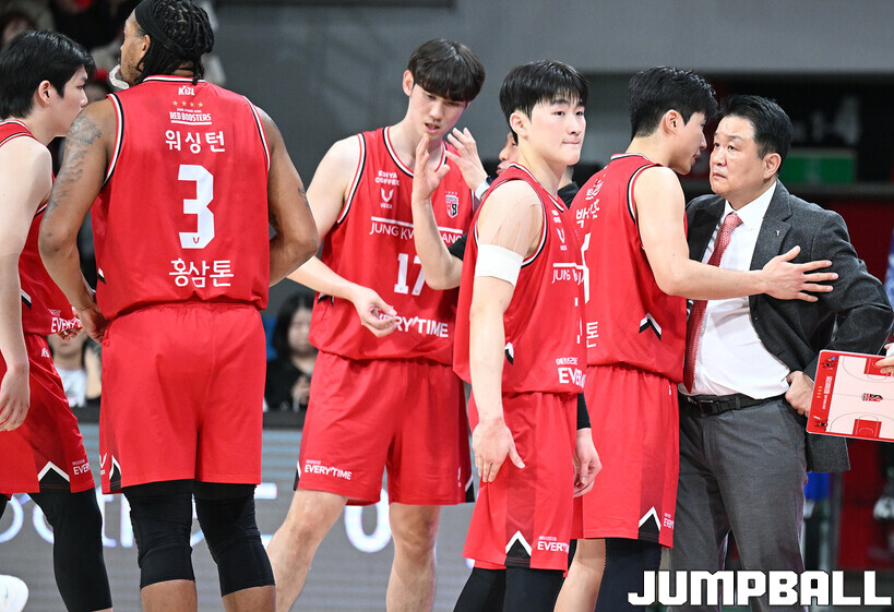 [점프볼=안양/문복주 기자] 안양 정관장은 7일 안양 정관장 아레나에서 열린 2025-2026 LG전자 프로농구 정규시즌 부산 KCC와의 맞대결에서 91-79로 승리했다. 정관장의 박지훈(22점 5어시스트 5리바운드)가 최다 득점을 기록했고, 조니 오브라이언트(16점)와 한승희(14점 3점슛 3개)가 후반에서 힘을 내며 승리로 이끌었다.