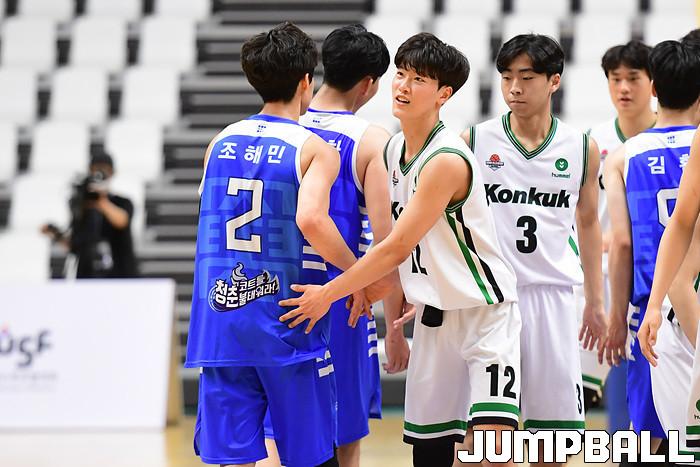 [점프볼=수원/박상혁 기자] 25일 서수원칠보체육관에서 열린 2021 KUSF 대학농구 U-리그 건국대와 조선대의 경기, 건국대가 조선대에 115-91로 승리했다.