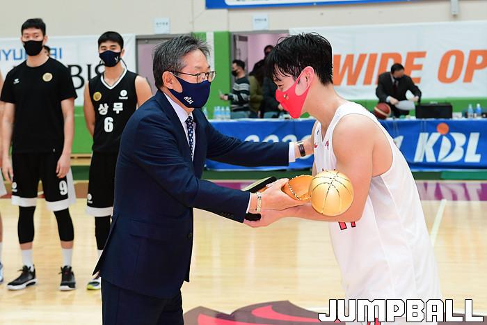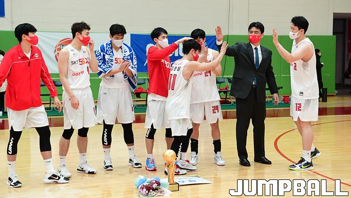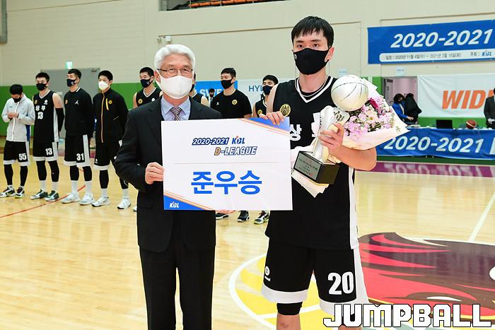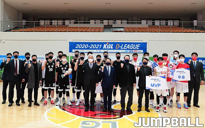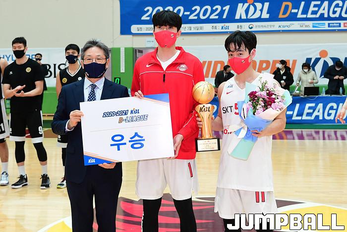 [점프볼=이천/박상혁 기자] 4일 경기도 이천 LG챔피언스파크에서 열린 2020-2021 KBL D리그 1차대회 SK와 상무의 결승전 경기, SK가 상무에게 82-81로 승리하며 KBL D리그 1차 대회 우승을 차지하였다. 1차 대회 시상식 화보.