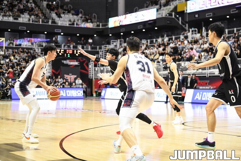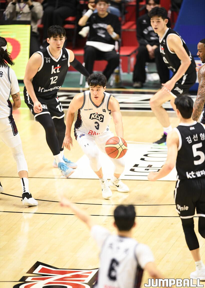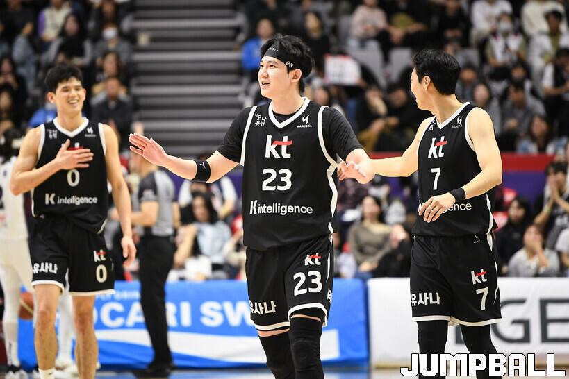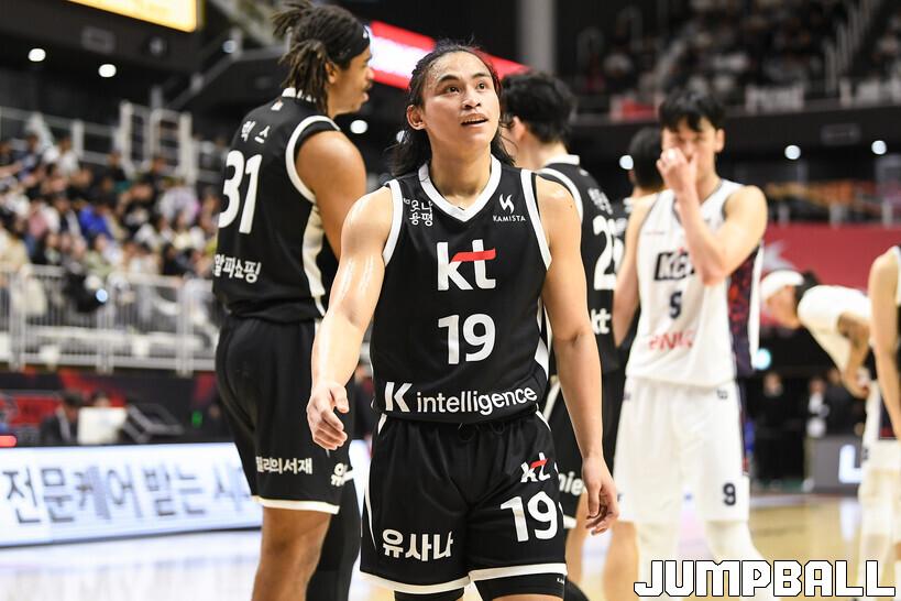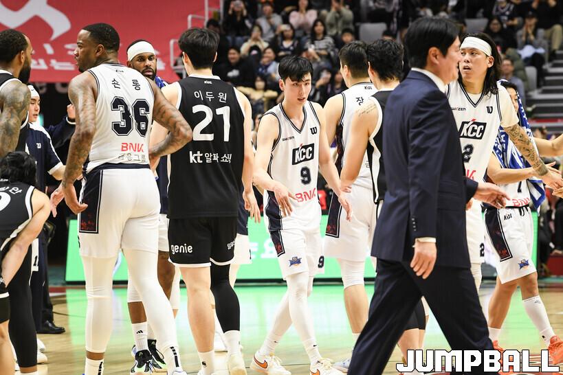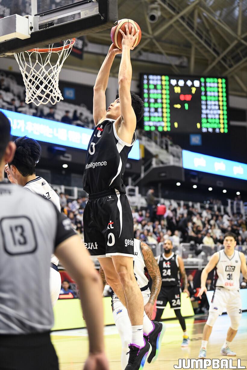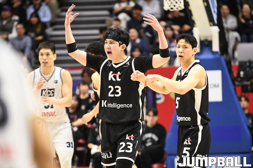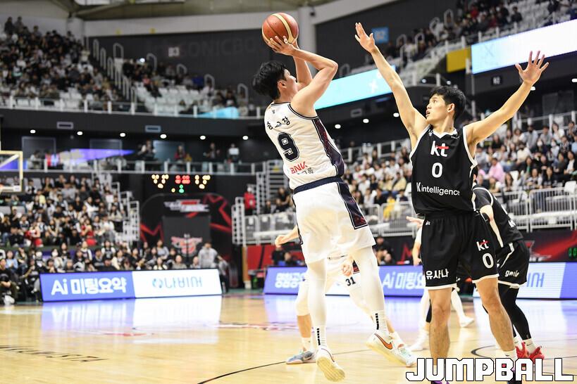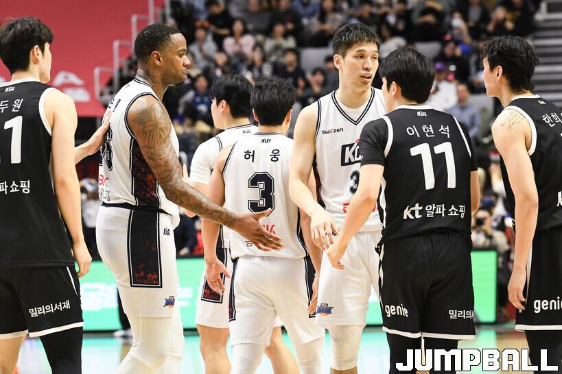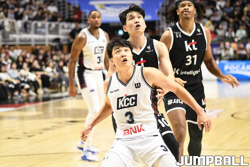 [점프볼=수원/유용우 기자] 8일 수원 KT 소닉붐 아레나에서 열린 2025-2026 LG전자 프로농구 수원 KT와 부산 KCC의 경기, KCC가 89-81로 KT에 원정 승리를 거뒀다. KCC는 숀 롱이 19점으로 팀 득점을 이끌었다. 송교창 17점, 허웅 14점을 보태며 팀 승리에 기여했다. KT는 각가 22점씩 올린 윌리엄스와 하윤기의 분전에도 불구하고 주변 동료들의 득점 도움을 못받으며 패배했다. 부상에서 복귀하며 시즌 첫 경기 치룬 KCC 허훈은 5점 2어시스트 2스틸을 기록했다.