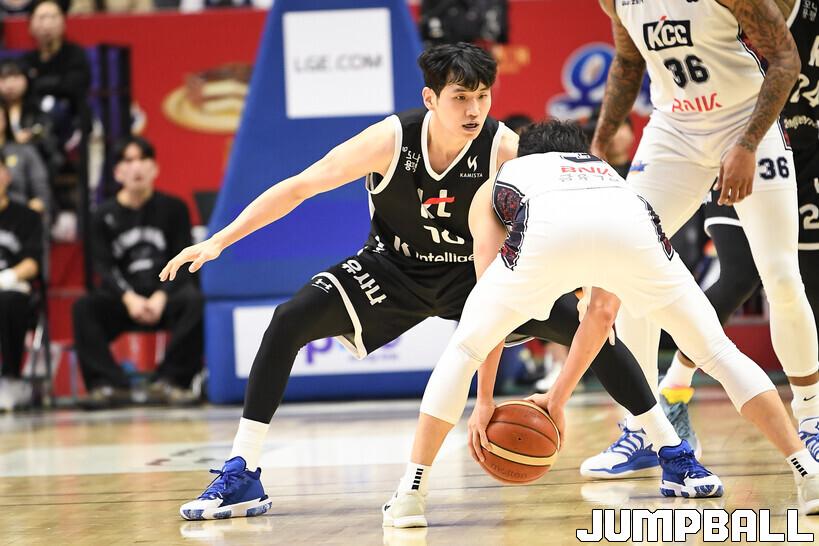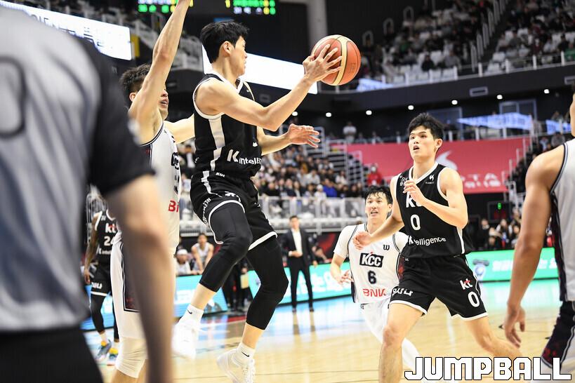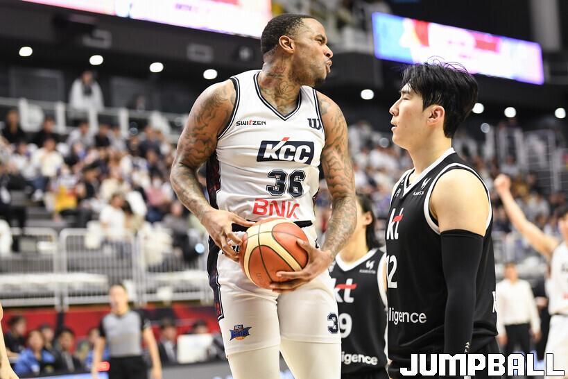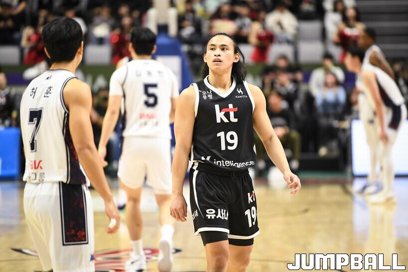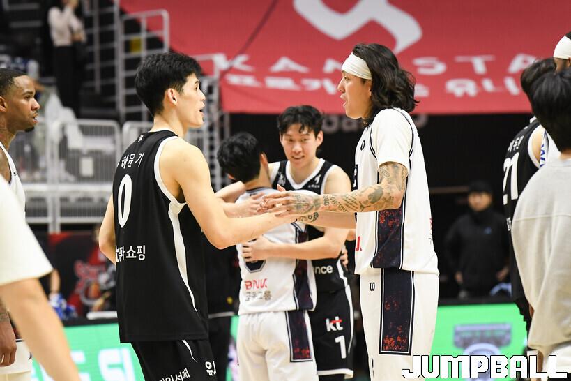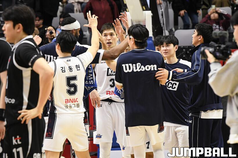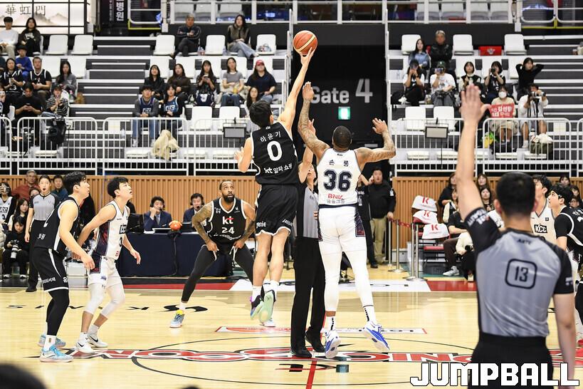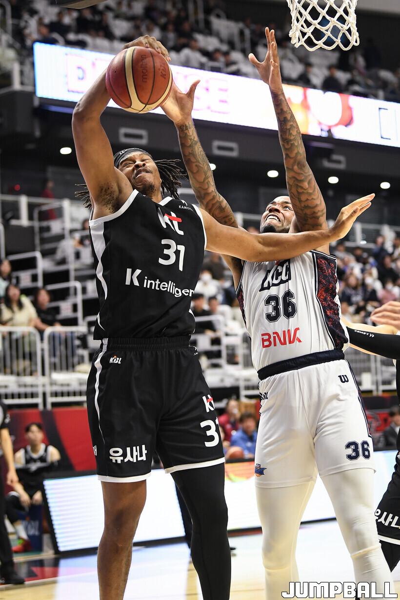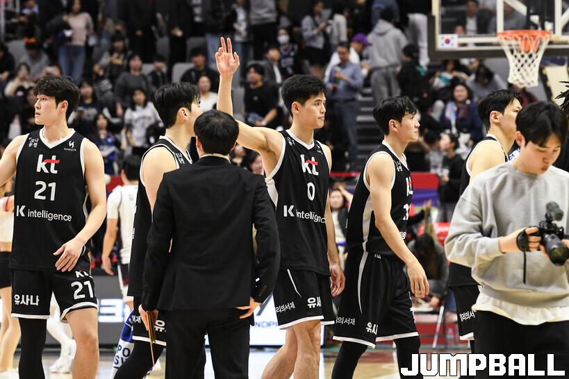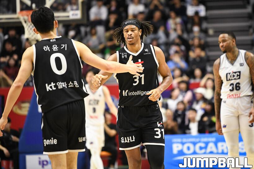 [점프볼=수원/유용우 기자] 8일 수원 KT 소닉붐 아레나에서 열린 2025-2026 LG전자 프로농구 수원 KT와 부산 KCC의 경기, KCC가 89-81로 KT에 원정 승리를 거뒀다. KCC는 숀 롱이 19점으로 팀 득점을 이끌었다. 송교창 17점, 허웅 14점을 보태며 팀 승리에 기여했다. KT는 각가 22점씩 올린 윌리엄스와 하윤기의 분전에도 불구하고 주변 동료들의 득점 도움을 못받으며 패배했다. 부상에서 복귀하며 시즌 첫 경기 치룬 KCC 허훈은 5점 2어시스트 2스틸을 기록했다.