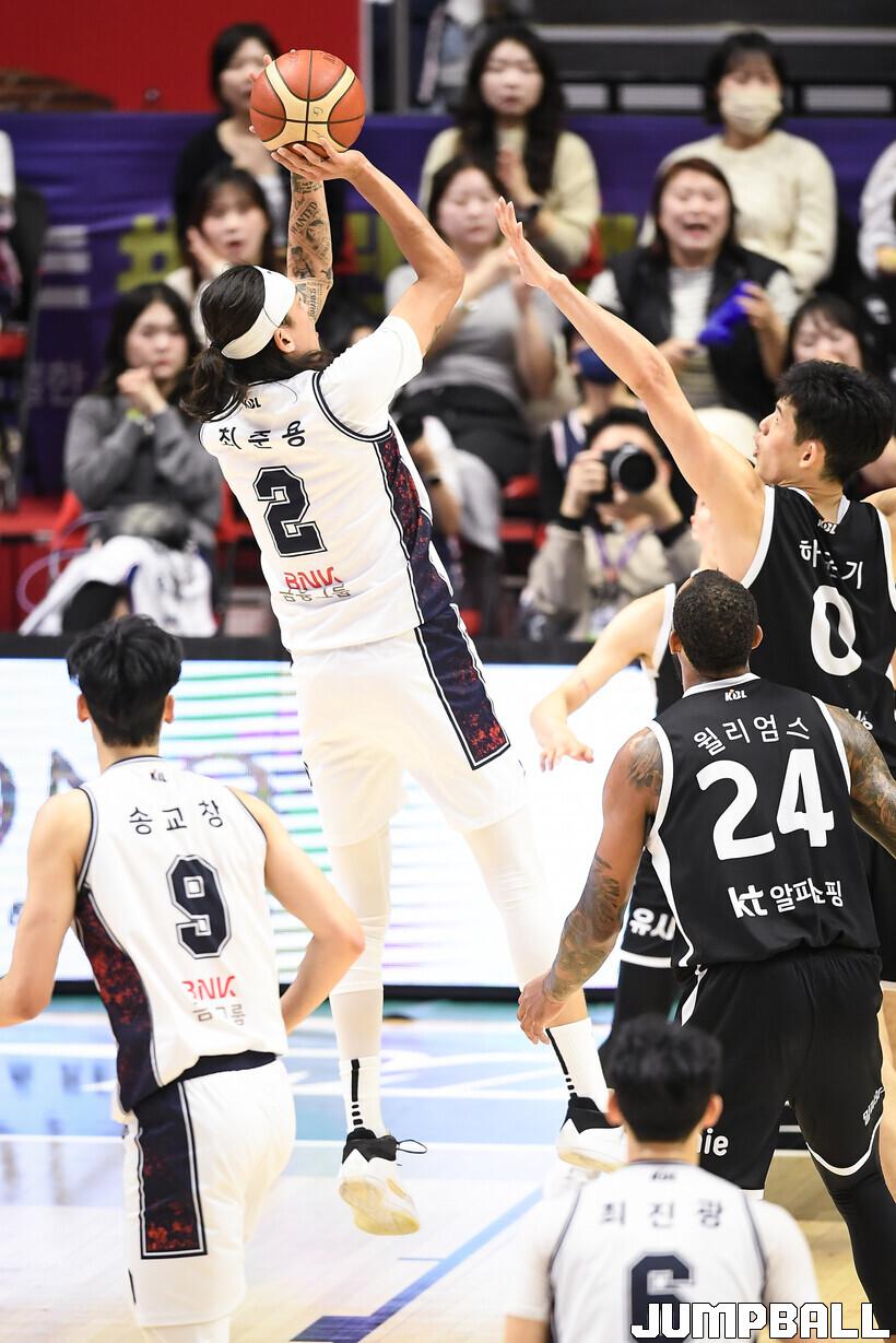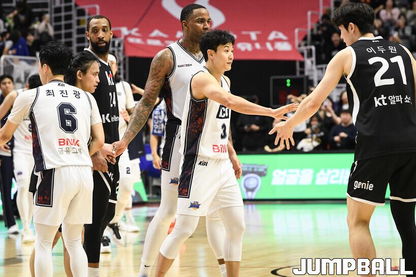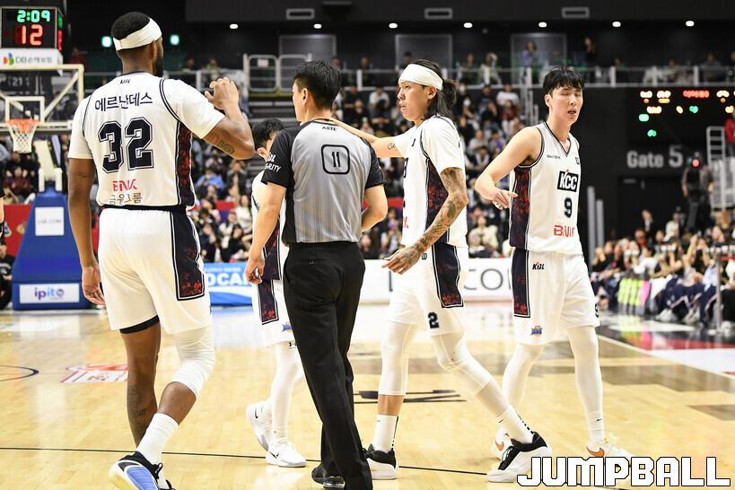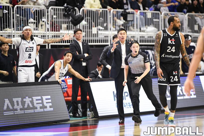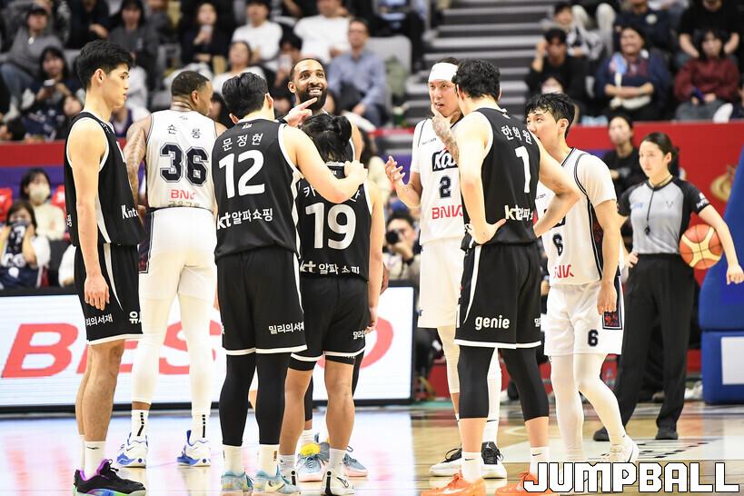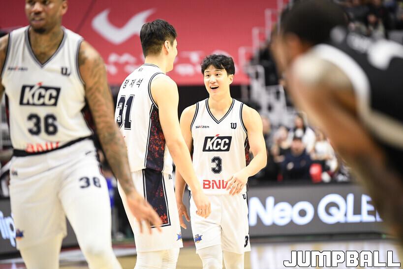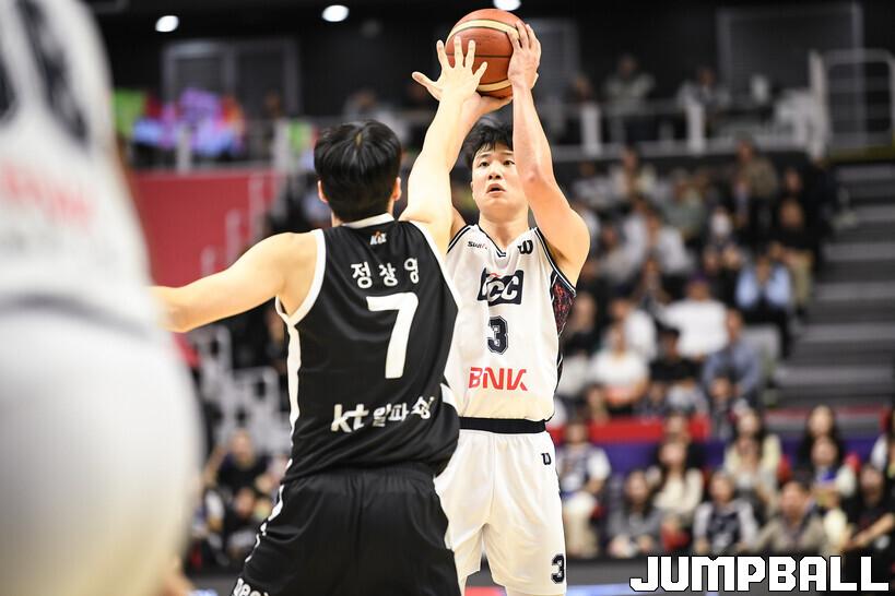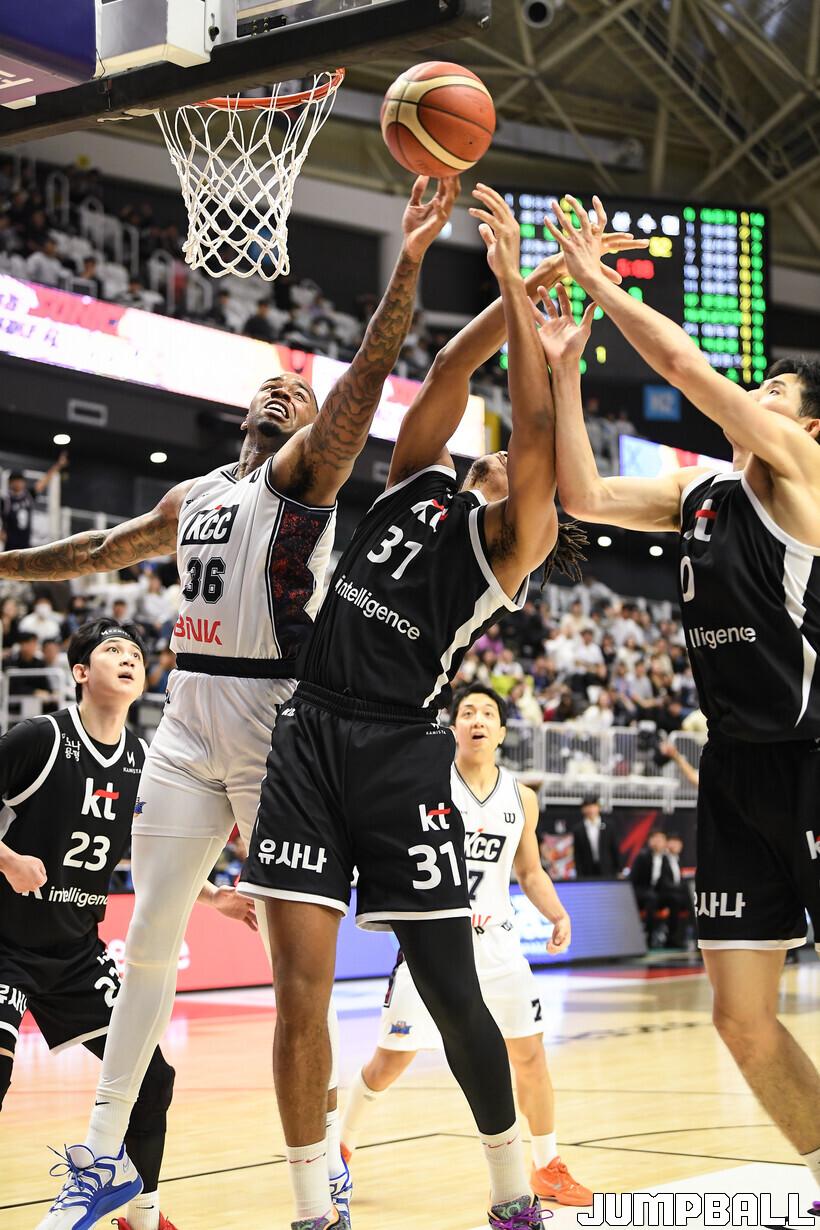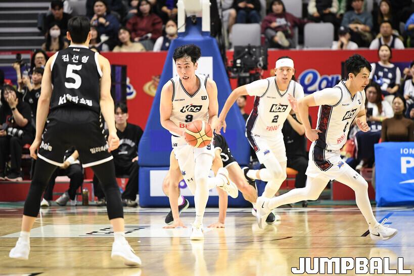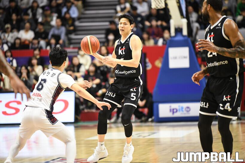 [점프볼=수원/유용우 기자] 8일 수원 KT 소닉붐 아레나에서 열린 2025-2026 LG전자 프로농구 수원 KT와 부산 KCC의 경기, KCC가 89-81로 KT에 원정 승리를 거뒀다. KCC는 숀 롱이 19점으로 팀 득점을 이끌었다. 송교창 17점, 허웅 14점을 보태며 팀 승리에 기여했다. KT는 각가 22점씩 올린 윌리엄스와 하윤기의 분전에도 불구하고 주변 동료들의 득점 도움을 못받으며 패배했다. 부상에서 복귀하며 시즌 첫 경기 치룬 KCC 허훈은 5점 2어시스트 2스틸을 기록했다.
