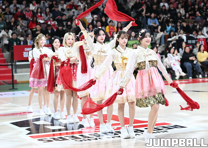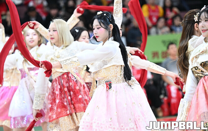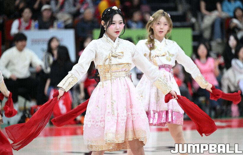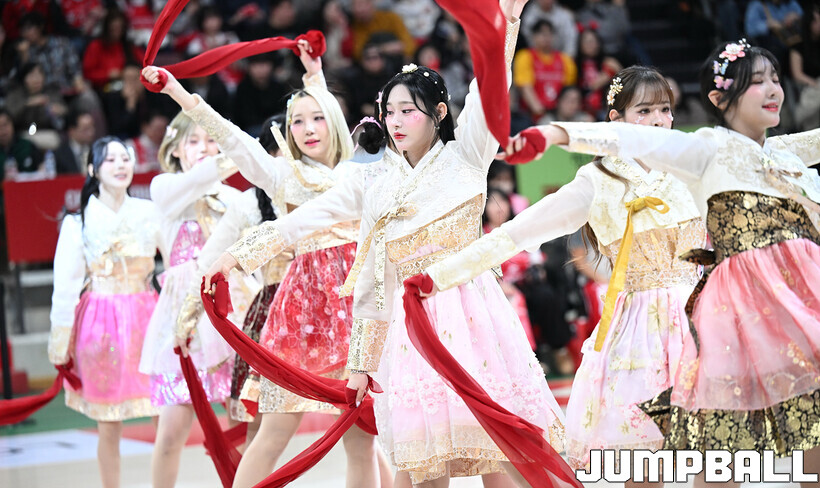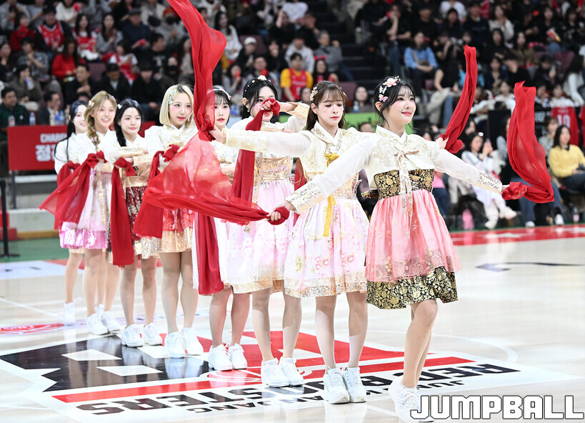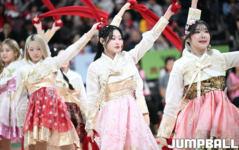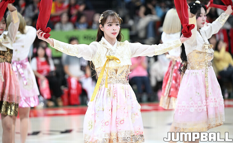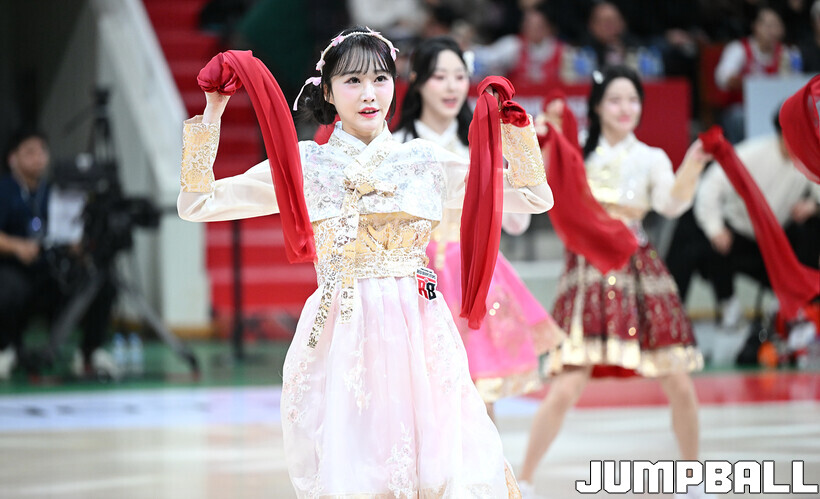[점프볼=안양/문복주 기자] 18일 안양 정관장 아레나에서 열린 2025-2026 LG전자 프로농구 안양 정관장과 원주 DB의 경기에 정관장 치어리더가 한복 춤사위 퍼포먼스를 펼쳤다.
