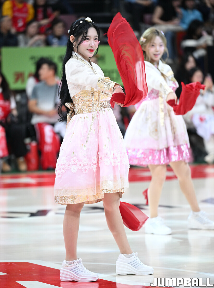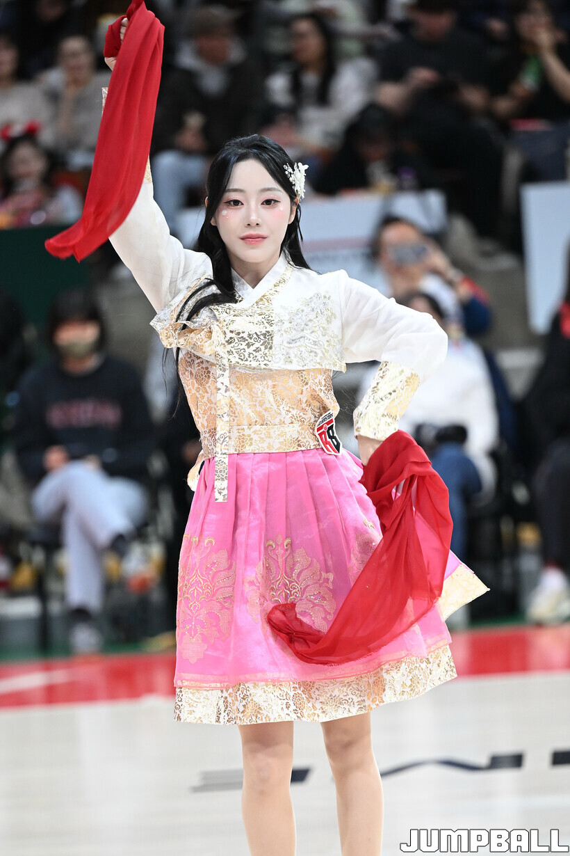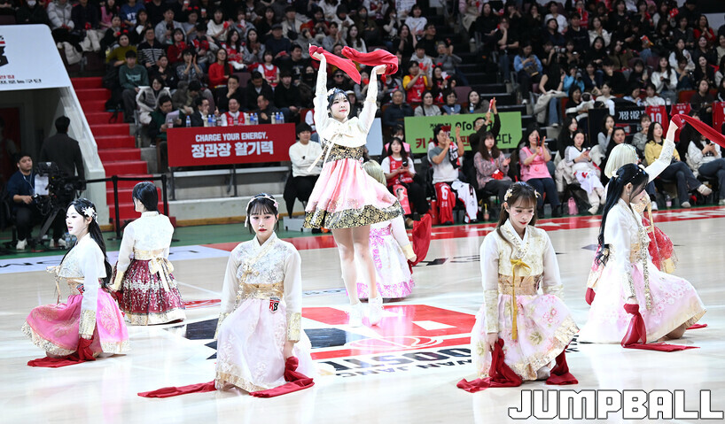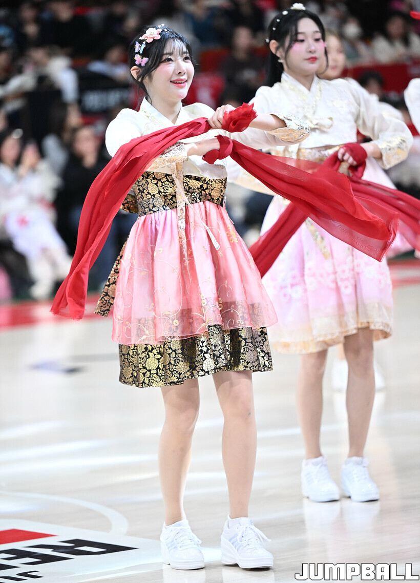 [점프볼=안양/문복주 기자] 18일 안양 정관장 아레나에서 열린 2025-2026 LG전자 프로농구 안양 정관장과 원주 DB의 경기에 정관장 치어리더가 한복 춤사위 퍼포먼스를 펼쳤다.