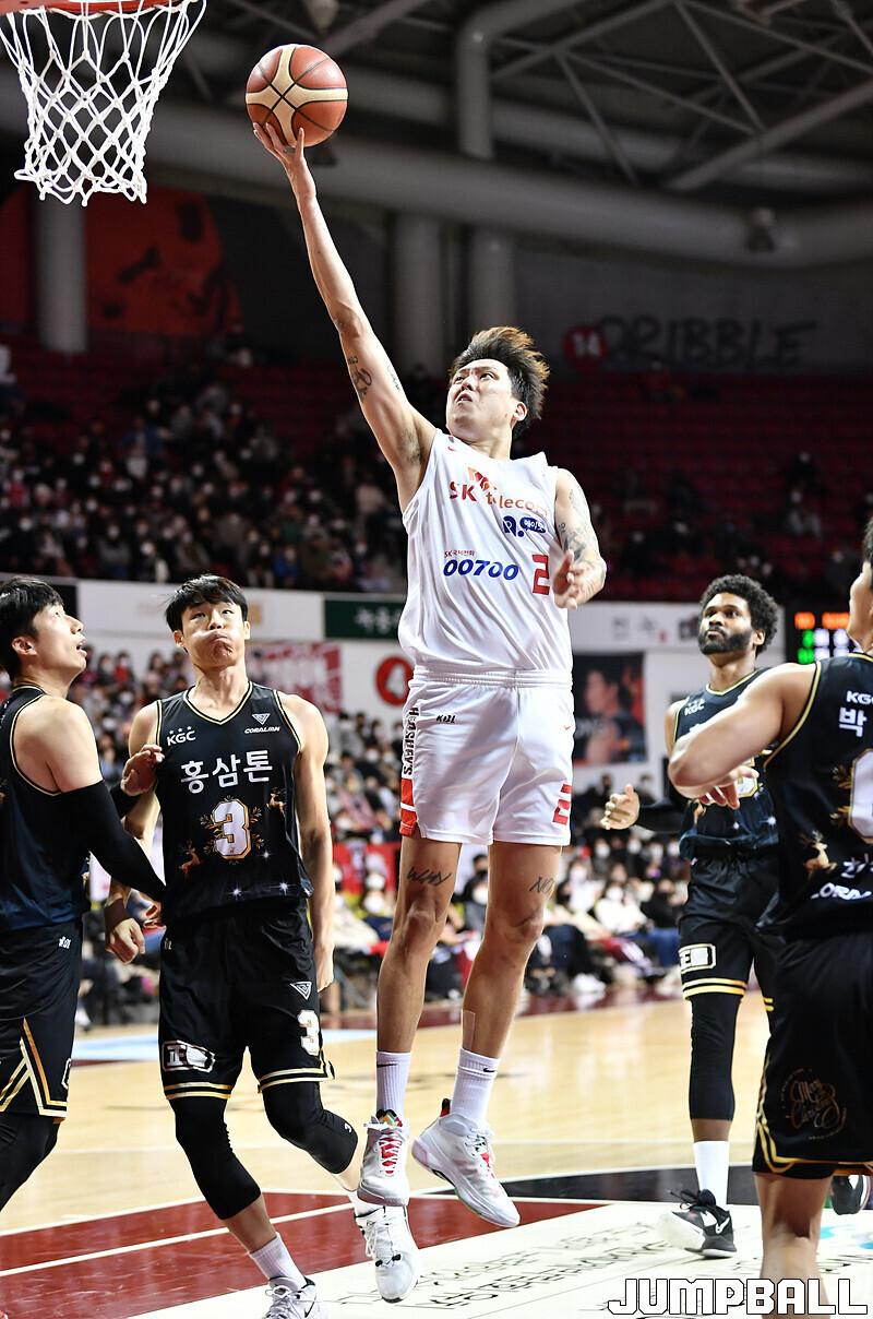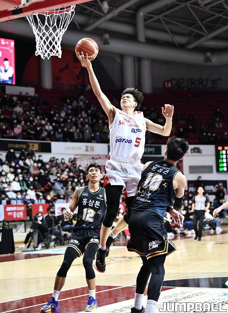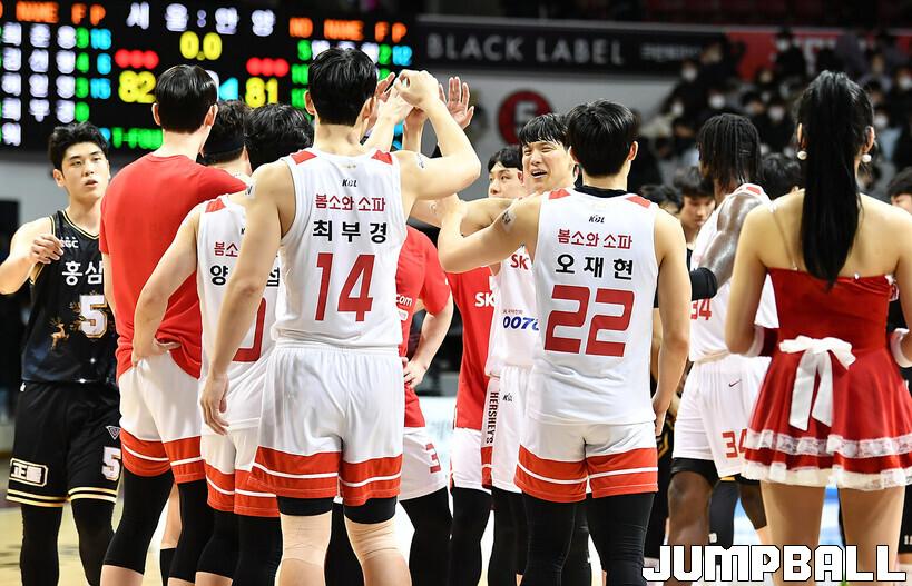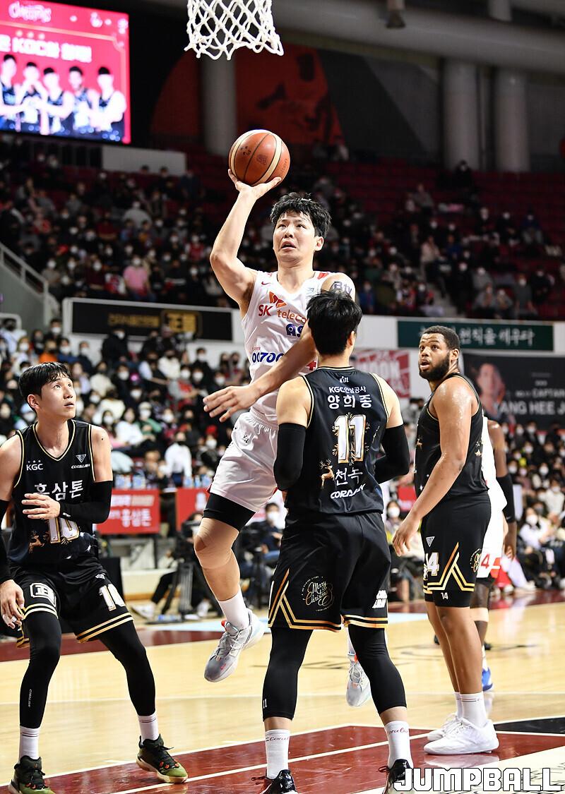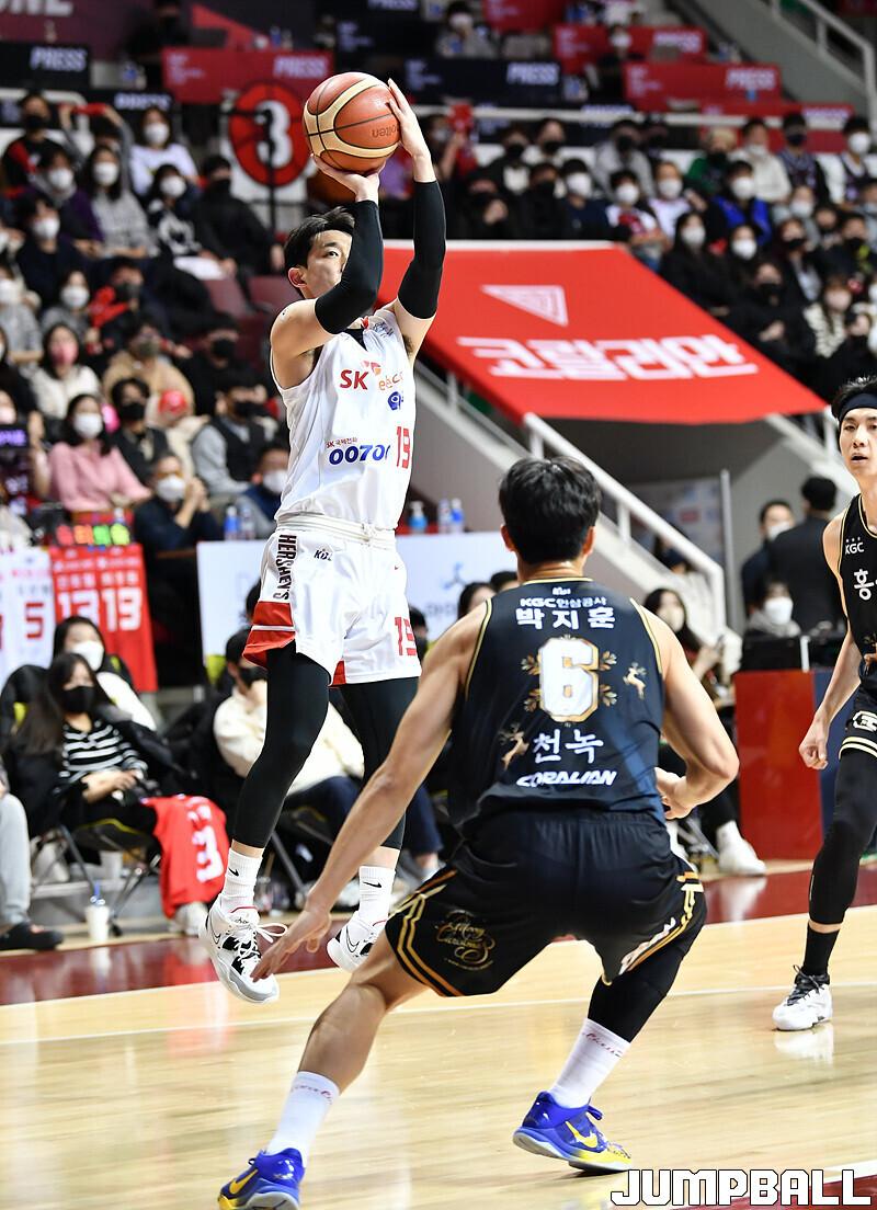 서울 SK는 18일 안양체육관에서 벌어진 안양 KGC와의 2022-2023 SKT 에이닷 프로농구 정규리그 3번째 맞대결에서 82-81로 승리했다.
