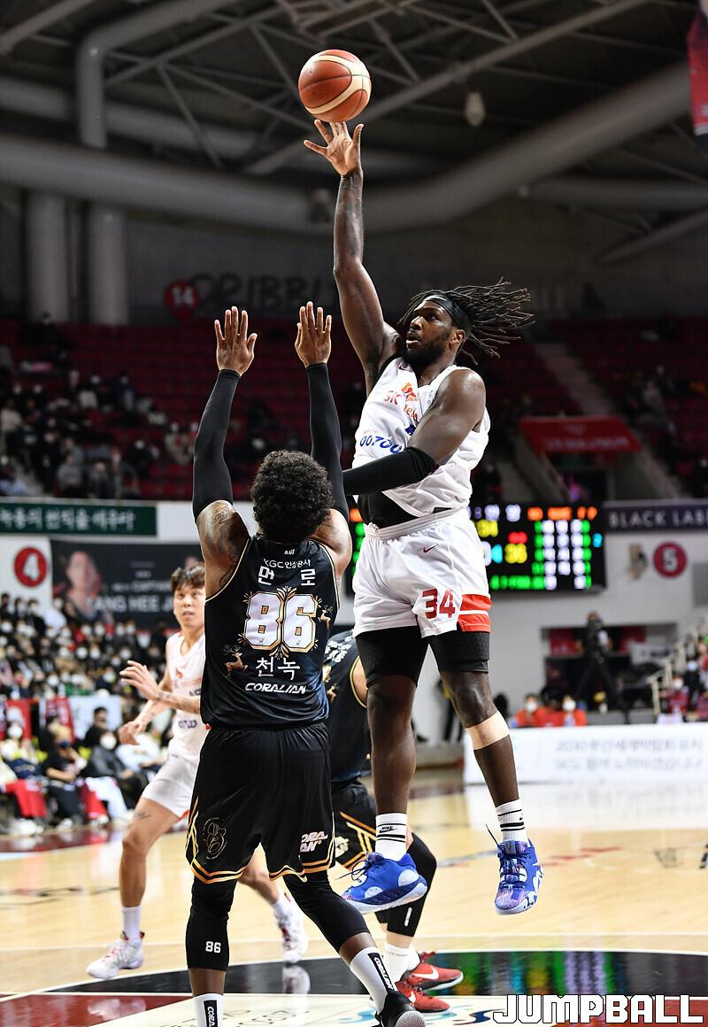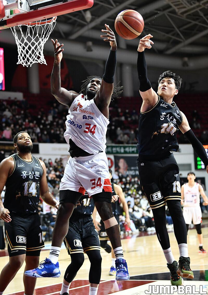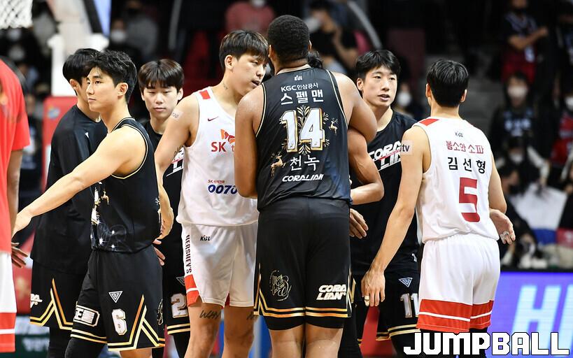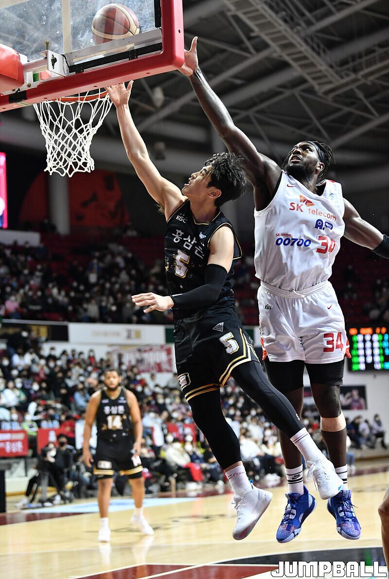 서울 SK는 18일 안양체육관에서 벌어진 안양 KGC와의 2022-2023 SKT 에이닷 프로농구 정규리그 3번째 맞대결에서 82-81로 승리했다.