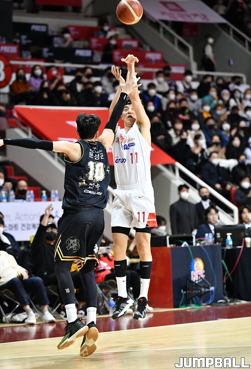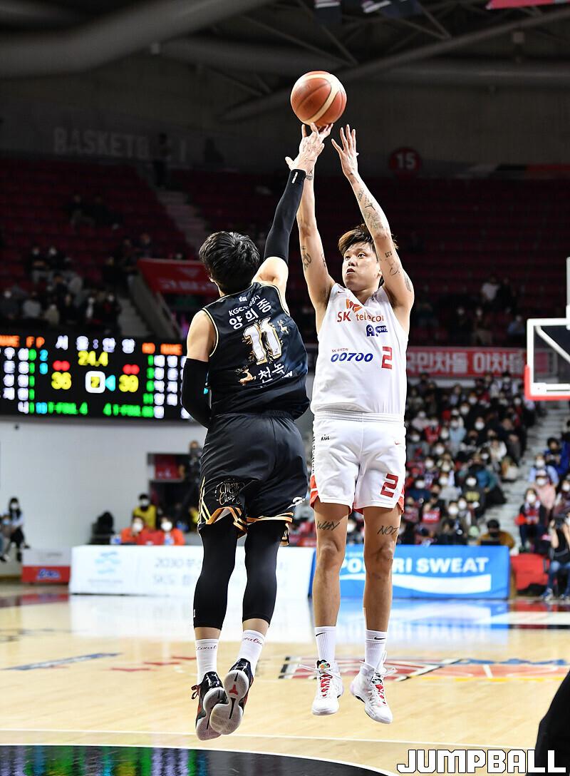 SK는 자밀 워니(32점 12리바운드 2스틸)가 맹활약했고, 최준용(16점 7리바운드 4어시스트), 허일영(15점 3리바운드)가 힘을 보탰다.