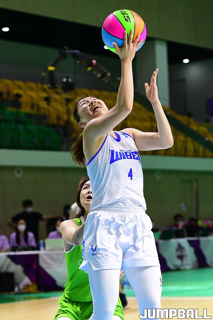 [점프볼=청라/박상혁 기자] 21일 인천 서구 하나글로벌캠퍼스에 위치한 하나은행 연습체육관에서 열린 '2020 하나원큐 3X3 TRIPLE JAM (트리플잼)' 1차 대회 결승경기, 우리은행 나윤정이 골밑에서 슛을 시도하고 있다.