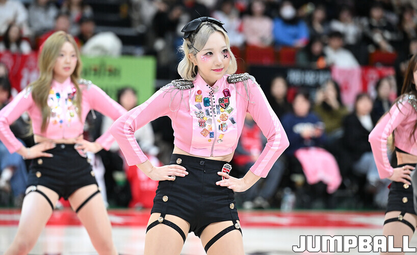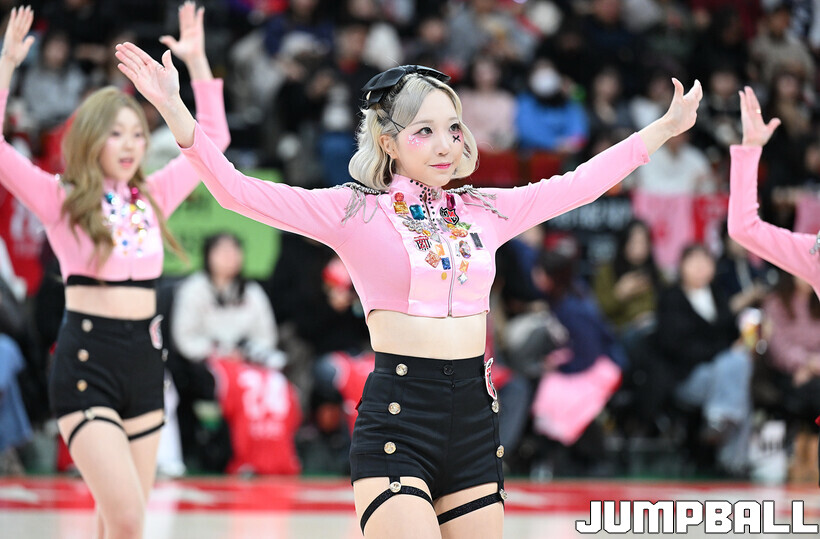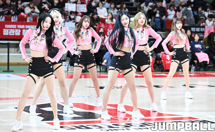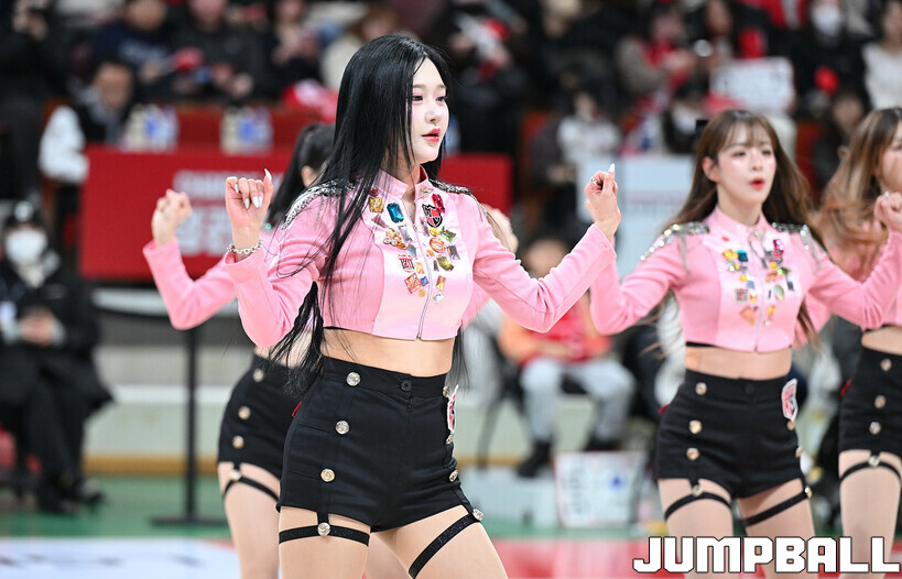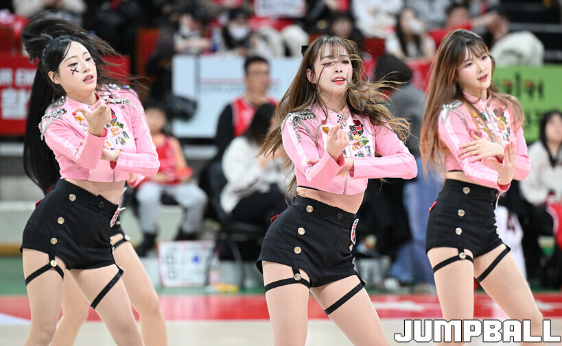 [점프볼=안양/문복주 기자] 7일 안양 정관장 아레나에서 열린 2025-2026 LG전자 프로농구 안양 정관장과 부산 KCC의 경기에 정관장 레드홀릭 치어리더가 공연을 펼쳤다.
