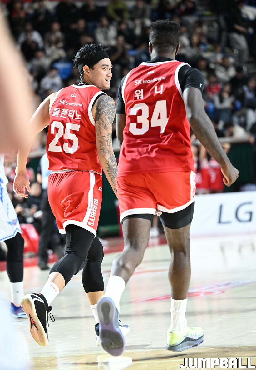 [점프볼=잠실학생/문복주 기자] 서울 SK는 24일 잠실학생체육관에서 열린 2025-2026 LG전자 프로농구 정규시즌 대구 한국가스공사와 4라운드 맞대결에서 95-81로 승리했다. SK의 워니가 트리플더블(27점 10리바운드 11어시스트)을 기록하며 승리를 이끌었다.