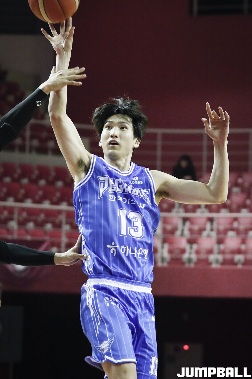 [점프볼=용인/양윤서 인터넷기자] 10일 경희대학교 국제캠퍼스 선승관에서 열린 2025-2026 KBL D리그 대구 한국가스공사와 상무의 경기, 한국가스공사 김민규가 플로터로 득점을 시도하고 있다.