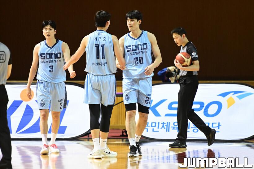 소노에서는 박종하(18점 5어시스트)와 강지훈(17점 6리바운드)이 활약했다. 조재우(11점 2리바운드)도 두 자리 수 득점을 기록했다. 반면 DB는 인승찬(10점 6리바운드 3어시스트) 외에 10점 이상 올린 선수가 없었다.