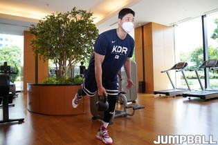10일 인도네시아 자카르타 페이몬트 자카르타 호텔 4층에 위치한 웨이트장에서 남자 농구 국가대표팀 웨이트 훈련을 진행했다. 대표팀 주장 이대성이 웨이트 훈련중 잠시 휴식을 취하고 있다.