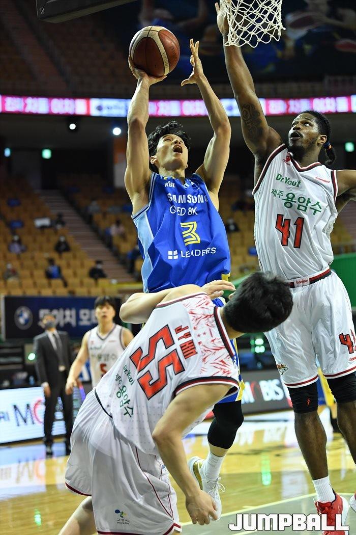 [점프볼=잠실/유용우 기자] 28일 잠실실내체육관에서 열린 2020-2021 현대모비스 프로농구 서울 삼성과 고양 오리온의 경기, 삼성 장민국이 공격하고 있다.