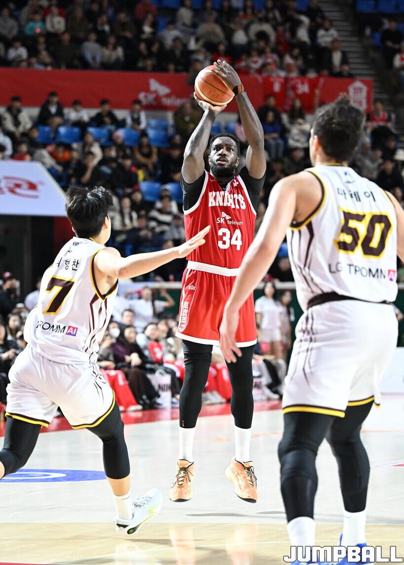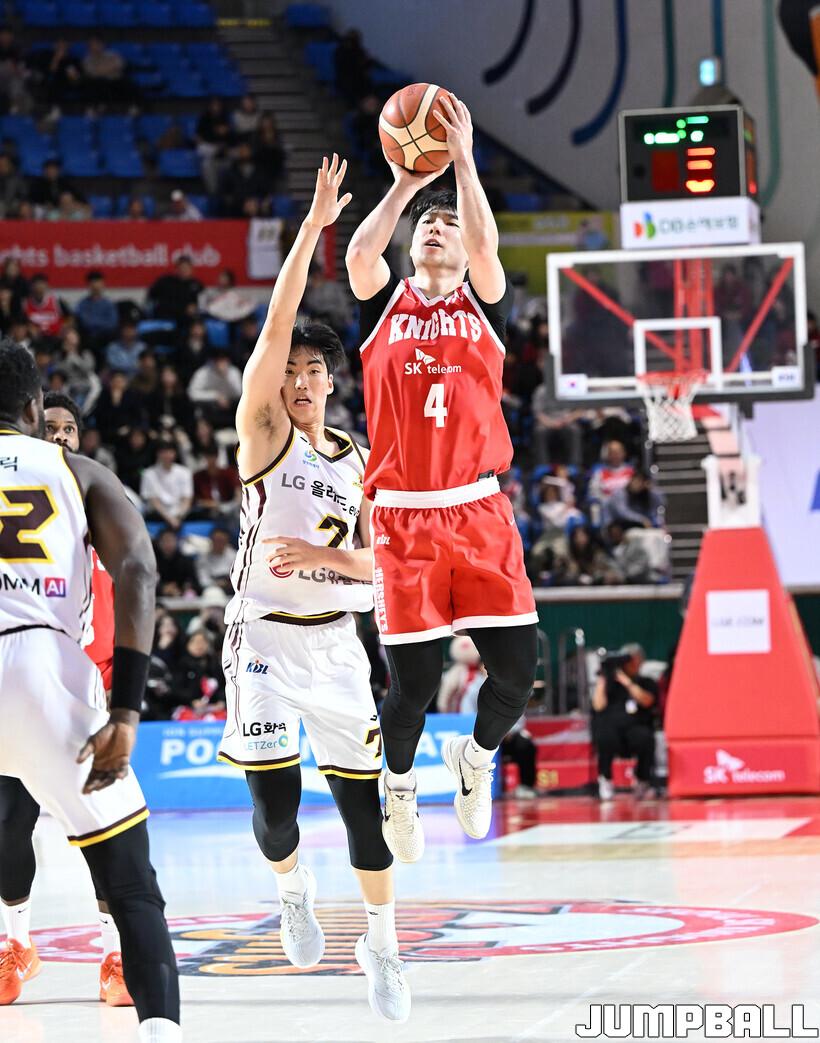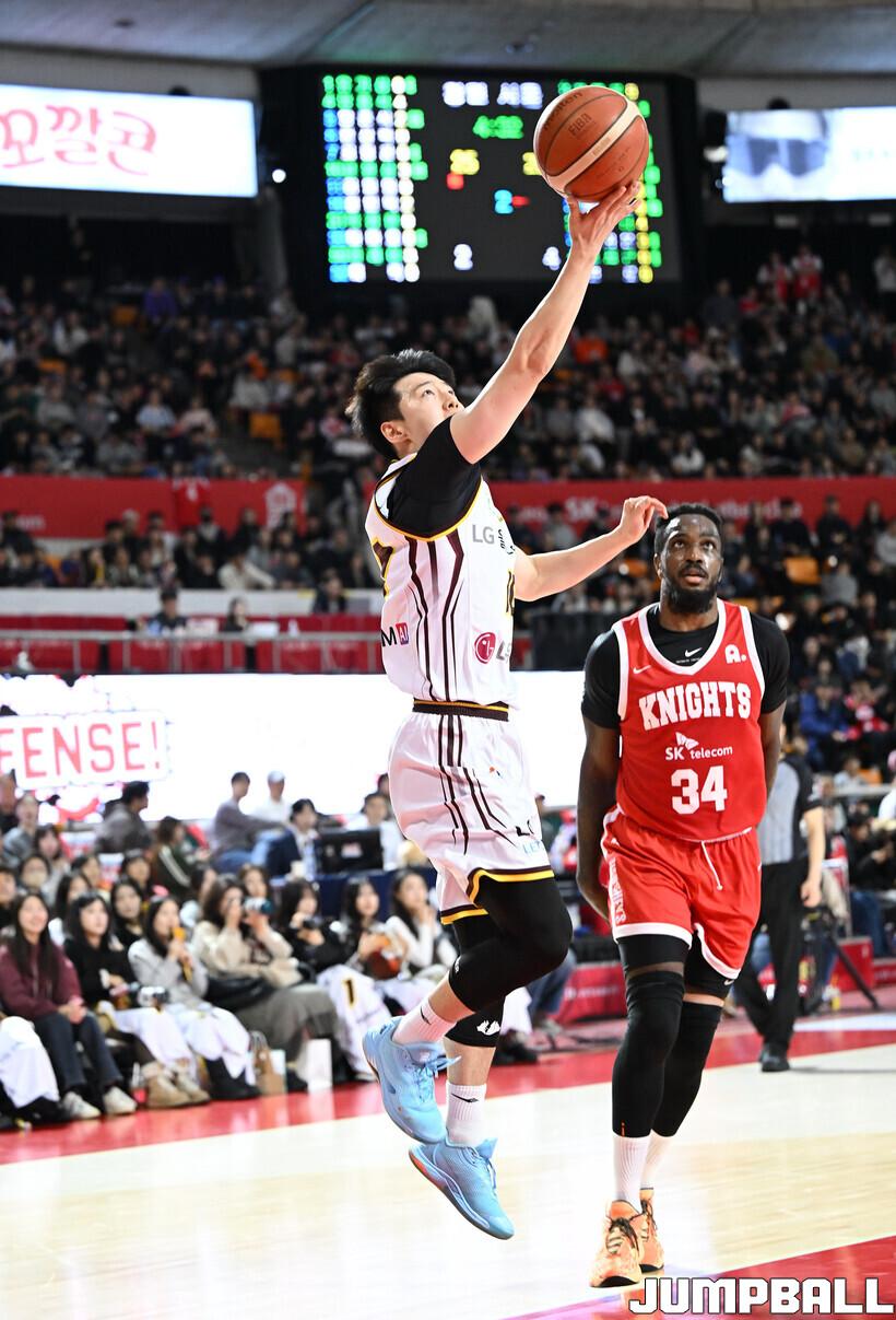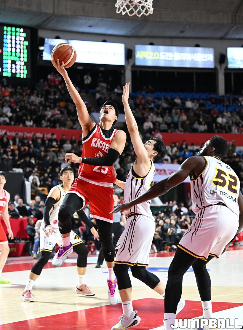 [점프볼=잠실학생/문복주 기자] 서울 SK는 13일 잠실학생체육관에서 열린 2025-2026 LG전자 프로농구 정규시즌 창원 LG와의 경기에서 안영준이 20점 3리바운드 2어시스트로 활약하고 김낙현(19점 5리바운드)과 자밀 워니(14점 4리바운드 8어시스트)까지 힘을 보탠 SK는 77-55로 승리를 거뒀다.