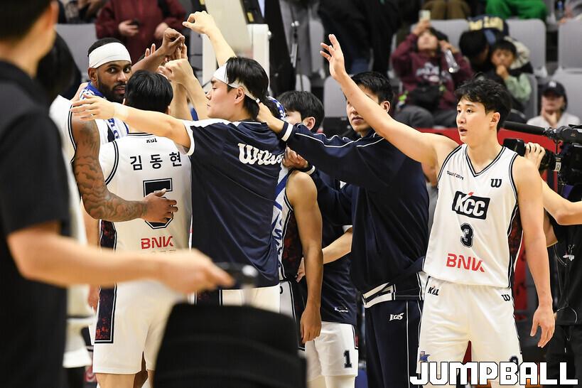 [점프볼=수원/유용우 기자] 8일 수원 KT 소닉붐 아레나에서 열린 2025-2026 LG전자 프로농구 수원 KT와 부산 KCC의 경기, KCC가 89-81로 KT에 원정 승리를 거뒀다.