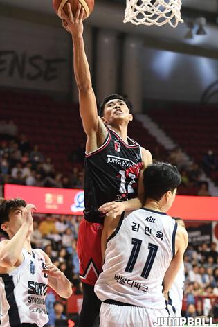 [점프볼=안양/박상혁 기자] 4일 안양체육관에서 열린 2023-2024 정관장 프로농구 안양 정관장과 고양 소노의 경기, 소노 재로드 존스가 슛을 시도하고 있다.