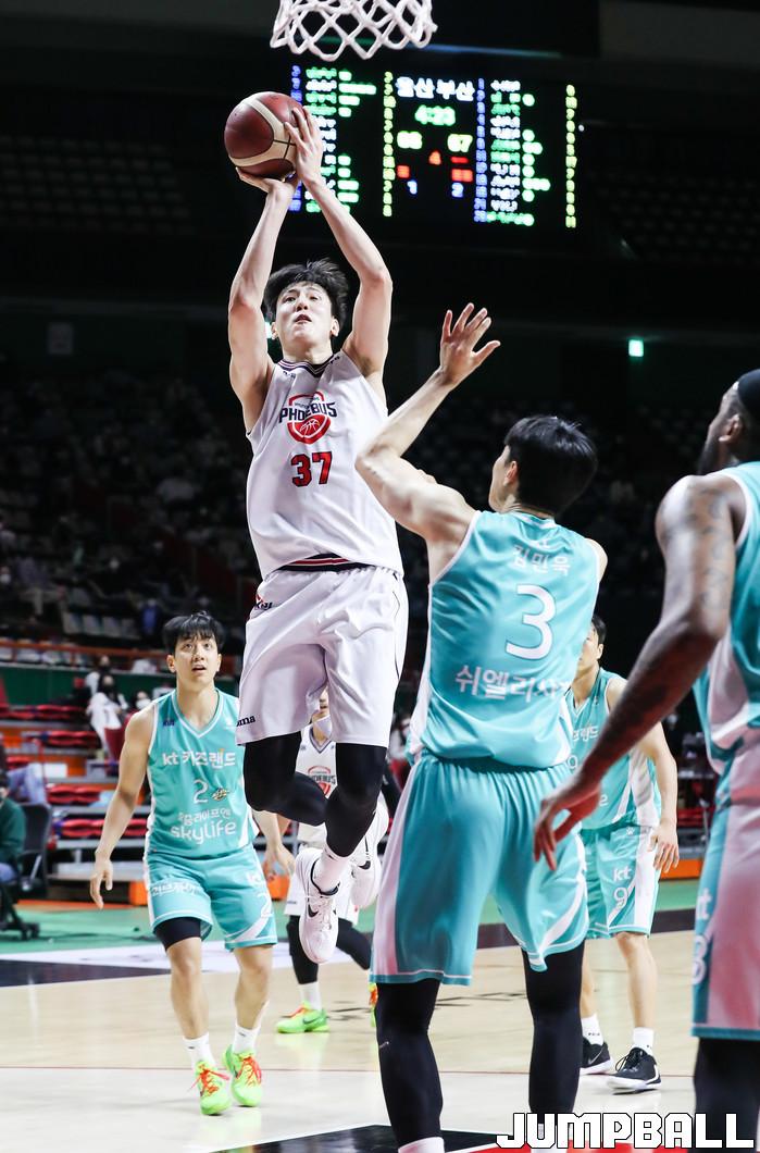 [점프볼=윤민호 기자] 울산 현대모비스는 21일 부산사직체육관에서 열린 2020~2021 현대모비스 프로농구 부산 KT와 원정 경기에서 72-71로 이겼다.