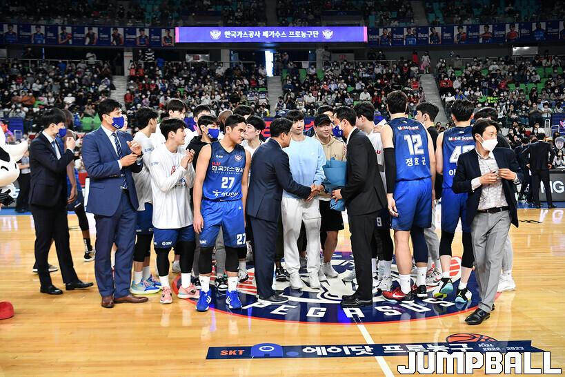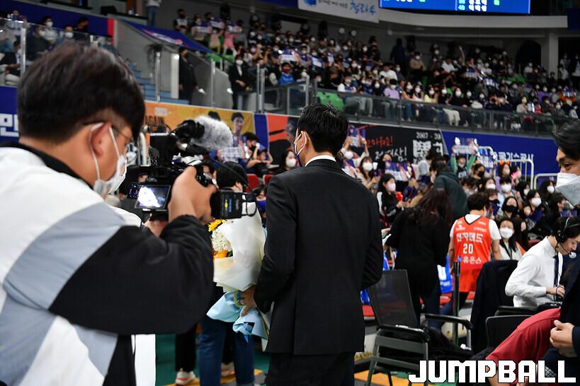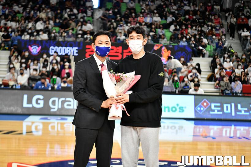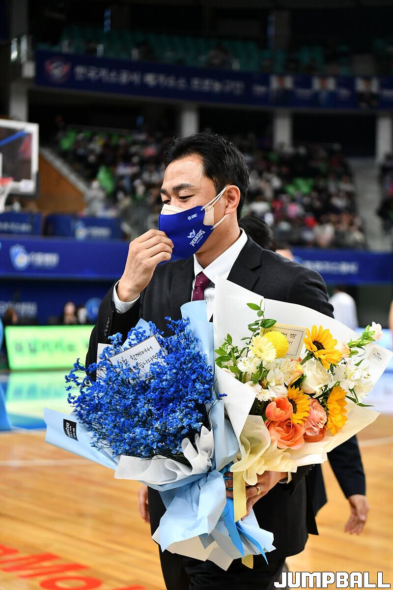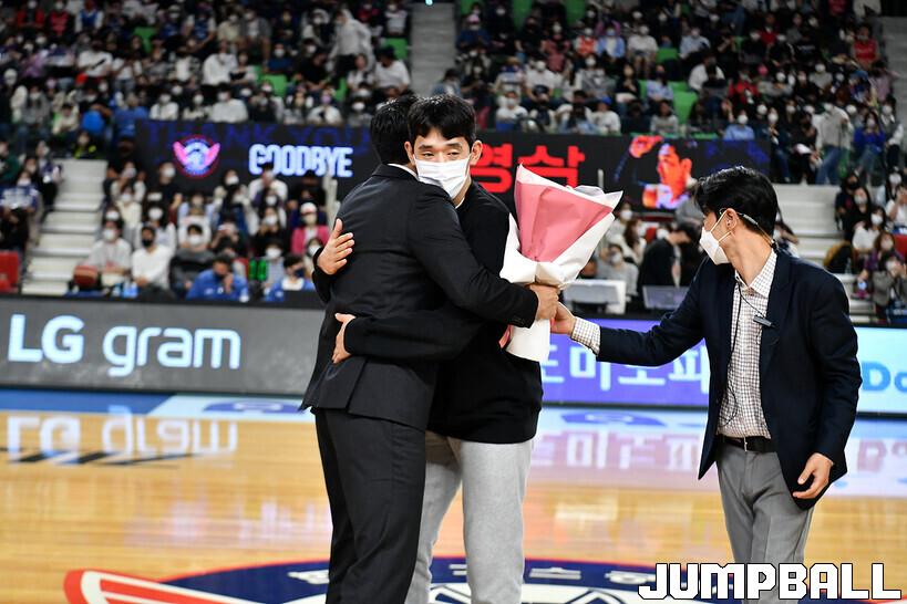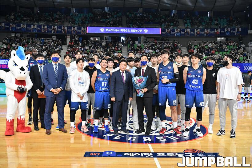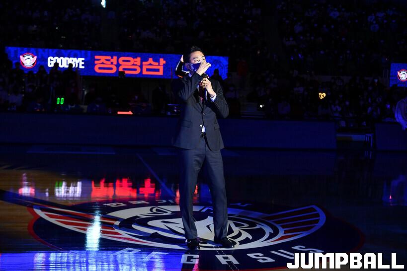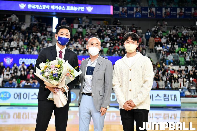 16일 대구실내체육관에서 열린 2022-2023 SKT 에이닷 프로농구 대구 한국가스공사와 전주 KCC의 경기의 하프타임에 정영삼 선수 은퇴식으로 감사패와 팬메세지액자 전달등 기념 행사를 진행했다.