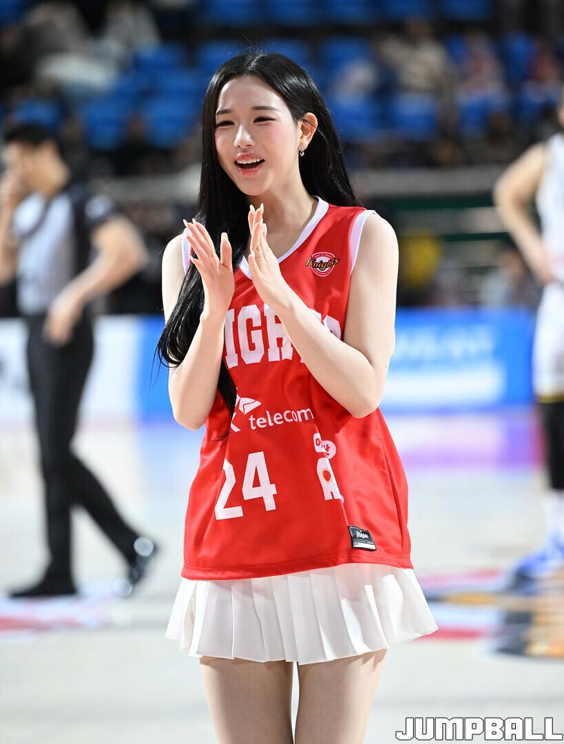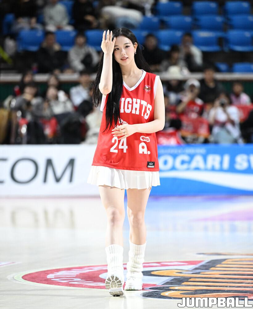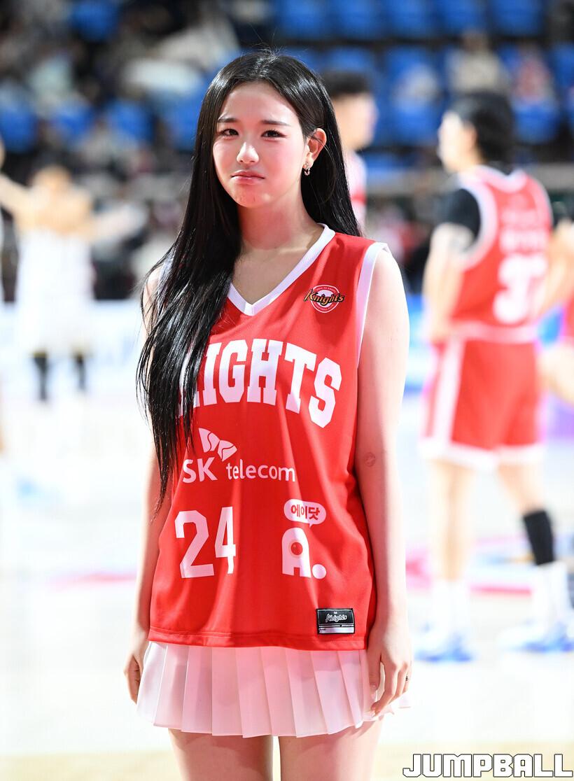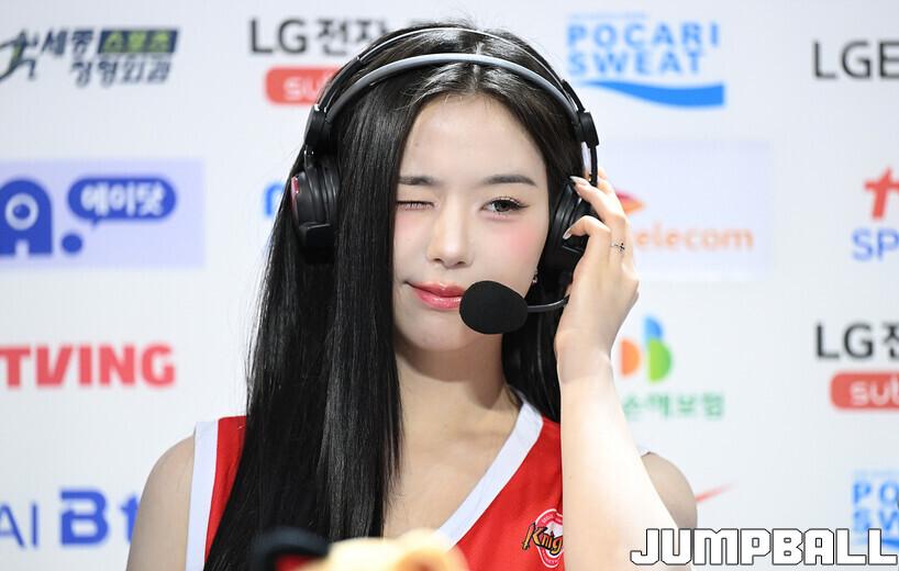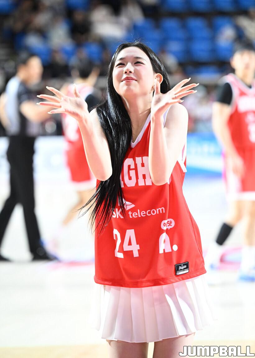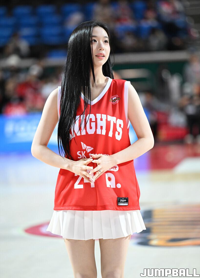 [점프볼=잠실학생/문복주 기자] 13일 잠실학생체육관에서 열린 2025-2026 LG전자 프로농구 정규시즌 서울 SK와 창원 LG의 경기에서 트리플에스 김채연이 경기전 시투와 하프타임에 tvN스포츠 중계를 했다.