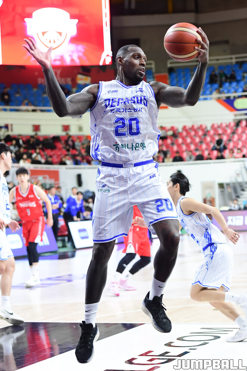 [점프볼=울산/박상혁 기자] 3일 울산동천체육관에서 열린 2025-2026 LG전자 프로농구 울산 현대모비스와 대구 한국가스공사의 경기, 한국가스공사 라건아가 리바운드를 잡아내고 있다.