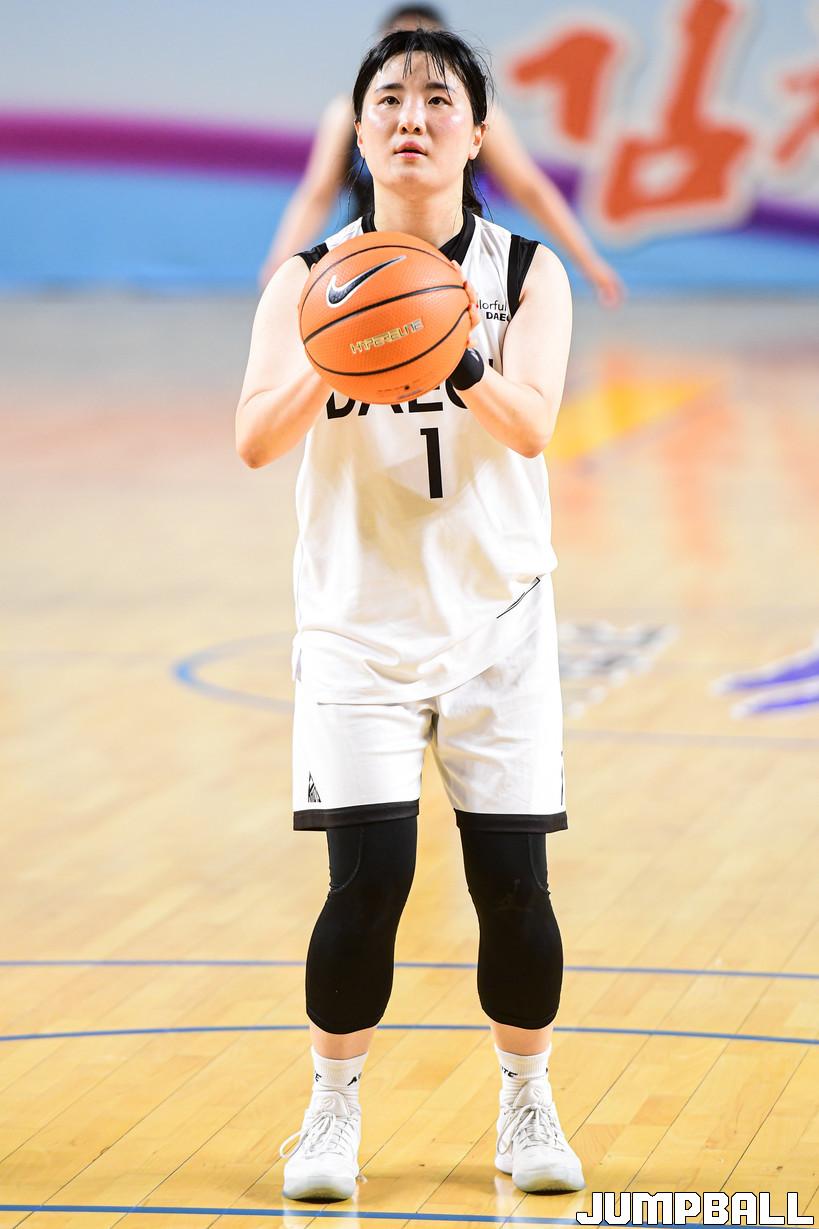 22일 김천실내체육관에서 열린 2022 전국실업농구연맹전 겸 제 41회 어머니 농구대회 대구시청과 서울시농구협회 경기, 대구시청 박진희가 자유투를 시도하고 있다.