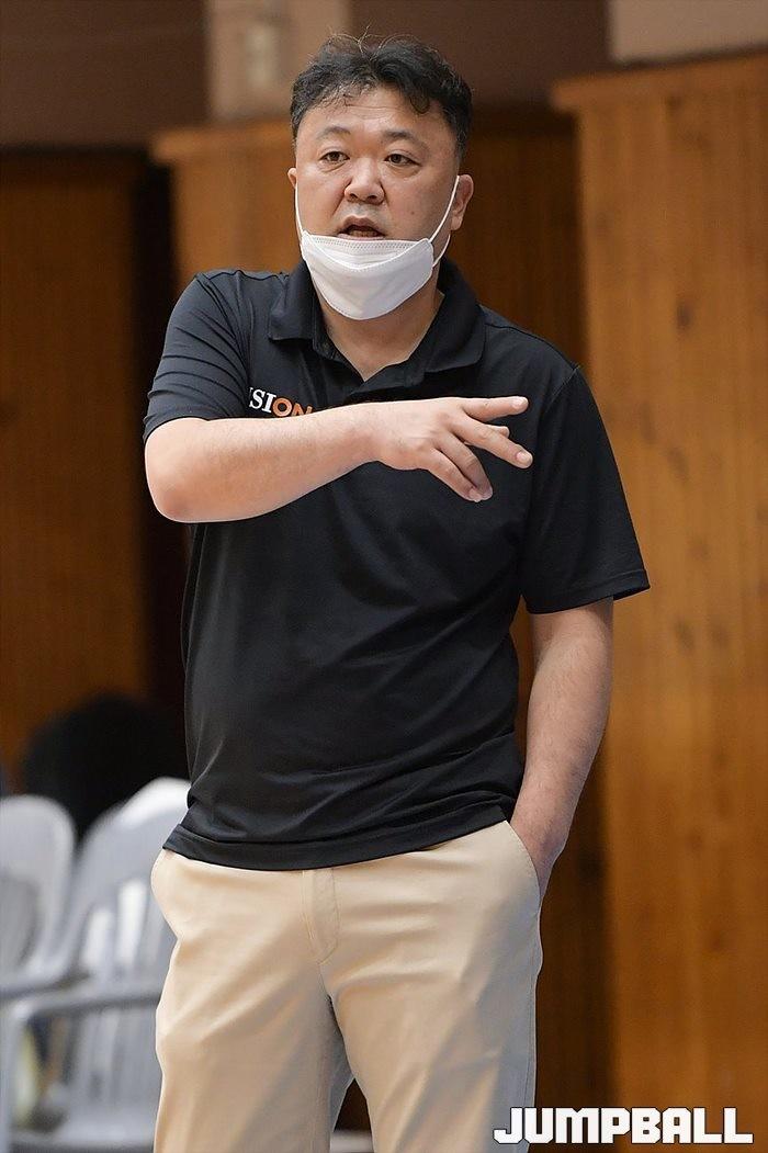 9일 전주비전대 문화체육관에서 열린 2022 KUSF 대학농구 U-리그 전주비전대와 부산대의 경기, 전주비전대 남궁정기 감독이 작전을 지시하고 있다.