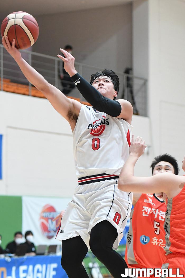 [점프볼=이천/박상혁 기자] 11일 이천 LG챔피언스파크에서 열린 2020-2021 현대모비스 프로농구 KBL 가리그 2차대회 인천 전자랜드와 울산 현대모비스의 준결승 경기, 현대모비스 김형진이 레이업슛을 시도하고 있다.