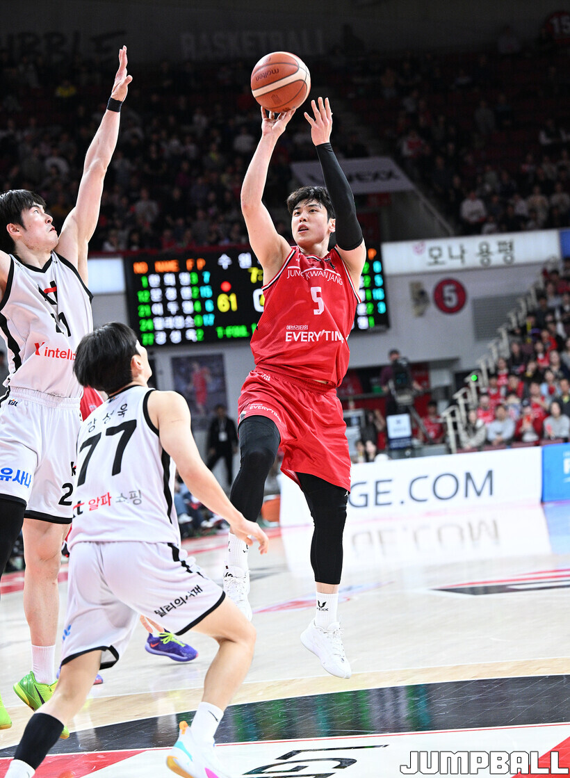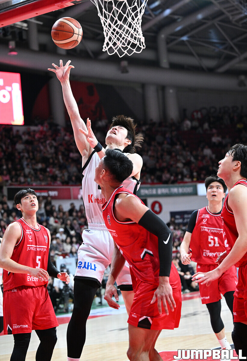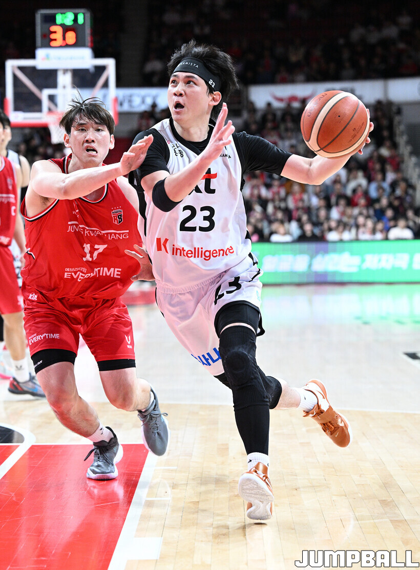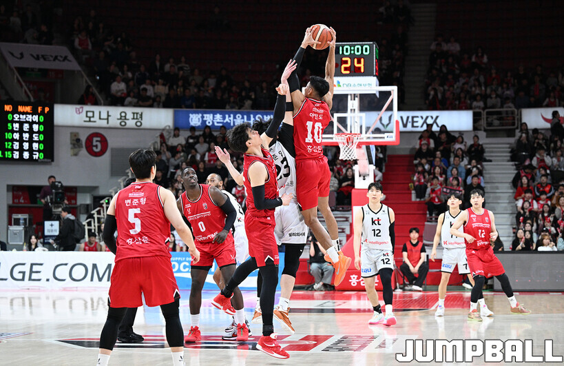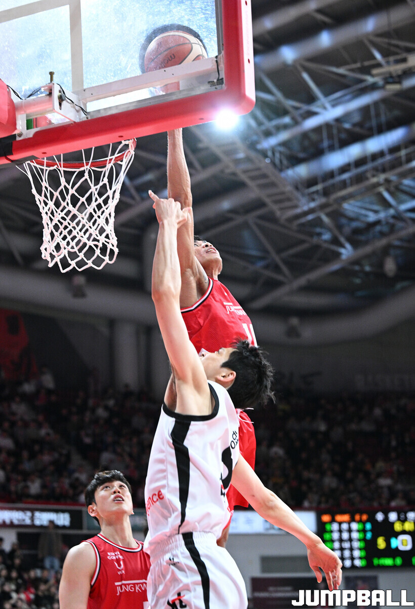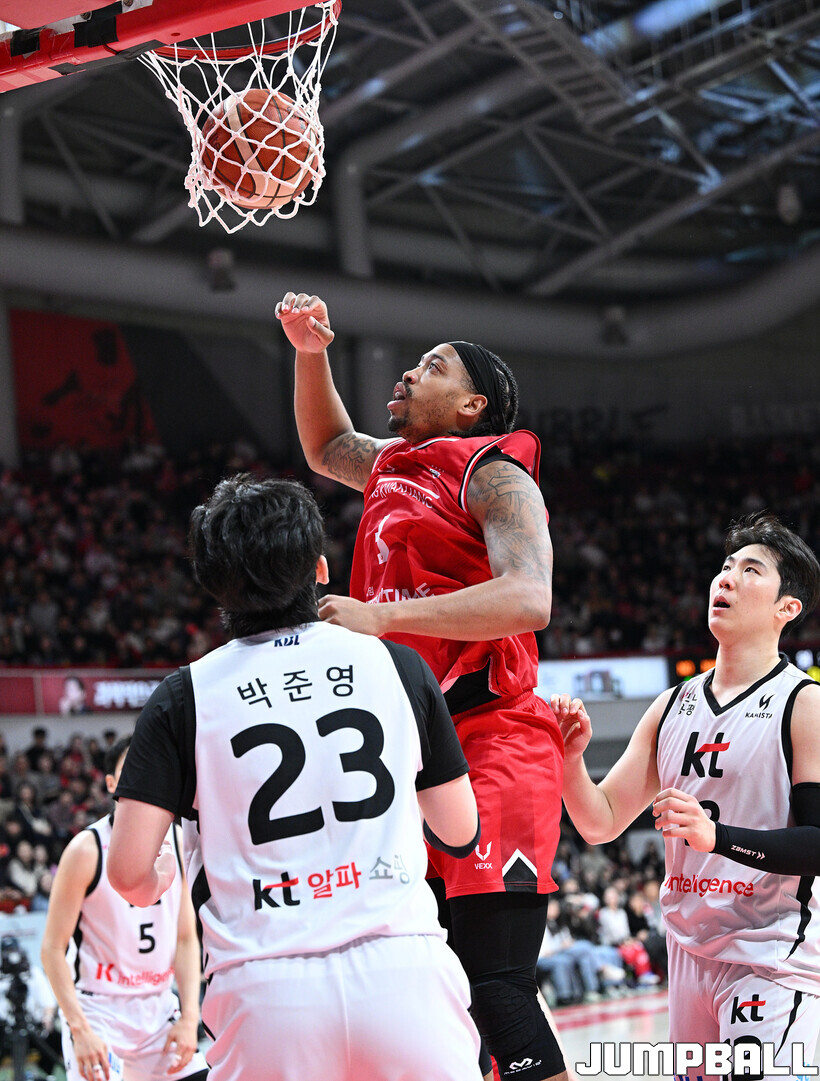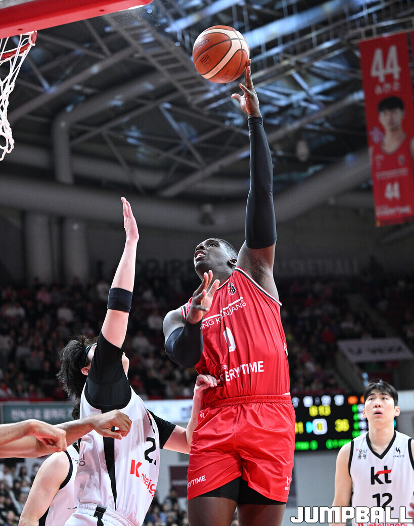 [점프볼=안양/문복주 기자] 안양 정관장은 22일 안양 정관장 아레나에서 열린 2025-2026 LG전자 프로농구 정규시즌 수원 KT와의 맞대결에서 86-77로 승리했다. 정관장의 조니 오브라이언트(28점)가 미친 활약을 펼쳤고 변준형(20점)도 세경기 연속 두 자릿 수 득점을 기록했다.