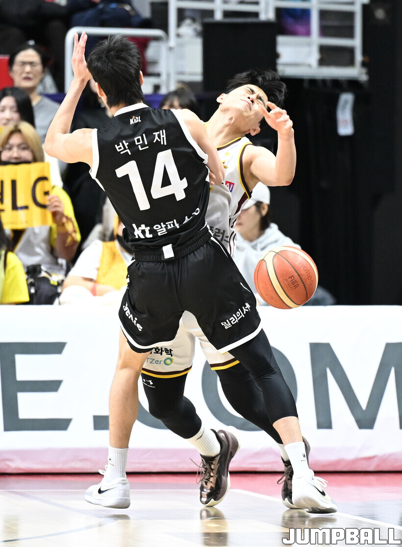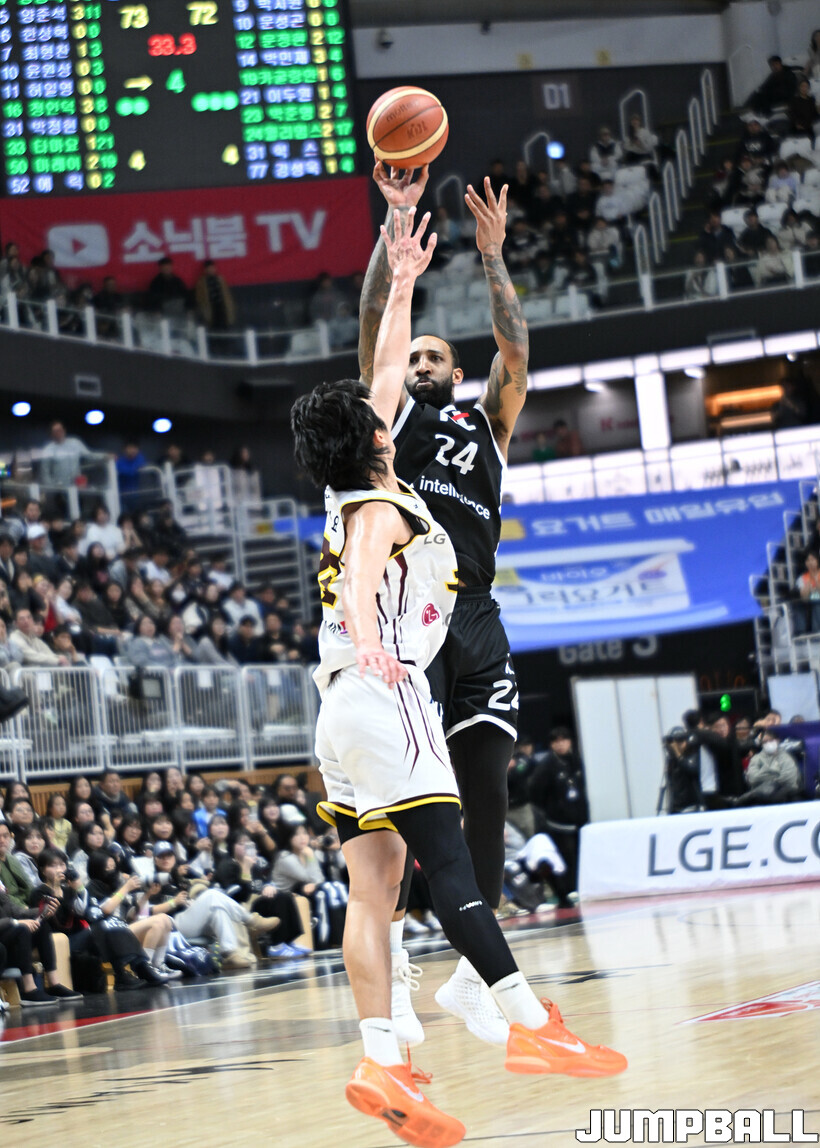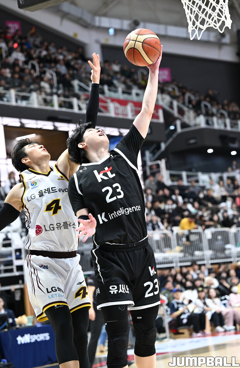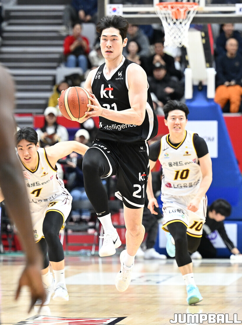 [점프볼=수원/문복주 기자] 수원 KT는 4일 수원 KT 소닉붐 아레나에서 2025-2026 LG전자 프로농구 정규시즌 창원 LG와 4라운드 맞대결에서 76-75로 승리했다. KT의 데릭 윌리엄스가 21점 5리바운드로 승리를 이끌고 특히 경기 종료 1.7초를 남기고 역전 위닝샷을 터트리며 주인공이 되었다.