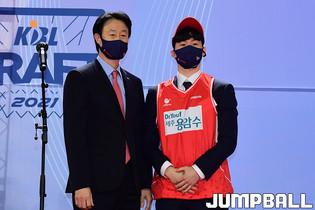 28일 잠실학생체육관에서 2021 KBL 신인선수 드래프트가 열렸다. 한국가스공사 유도훈 감독은 1라운드 8순위로 신승민을 지명했다.