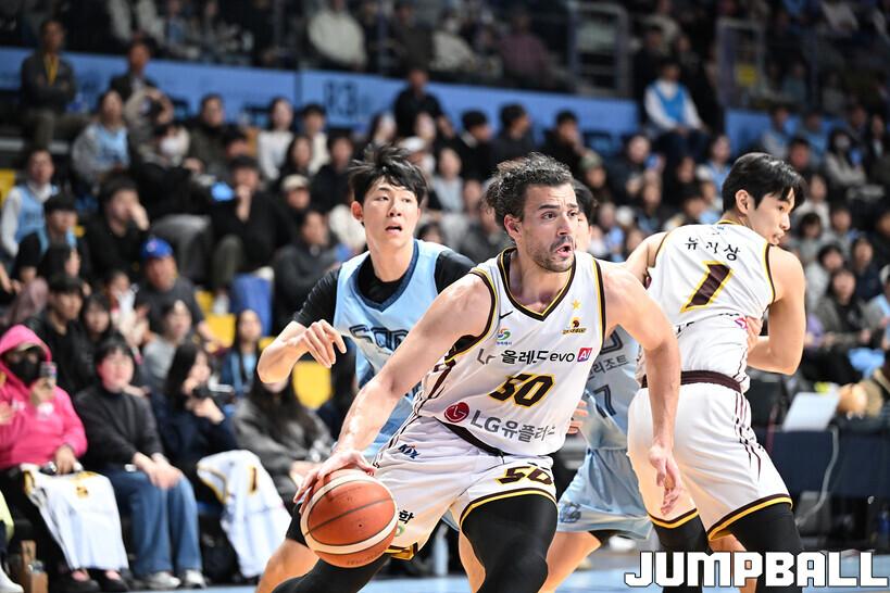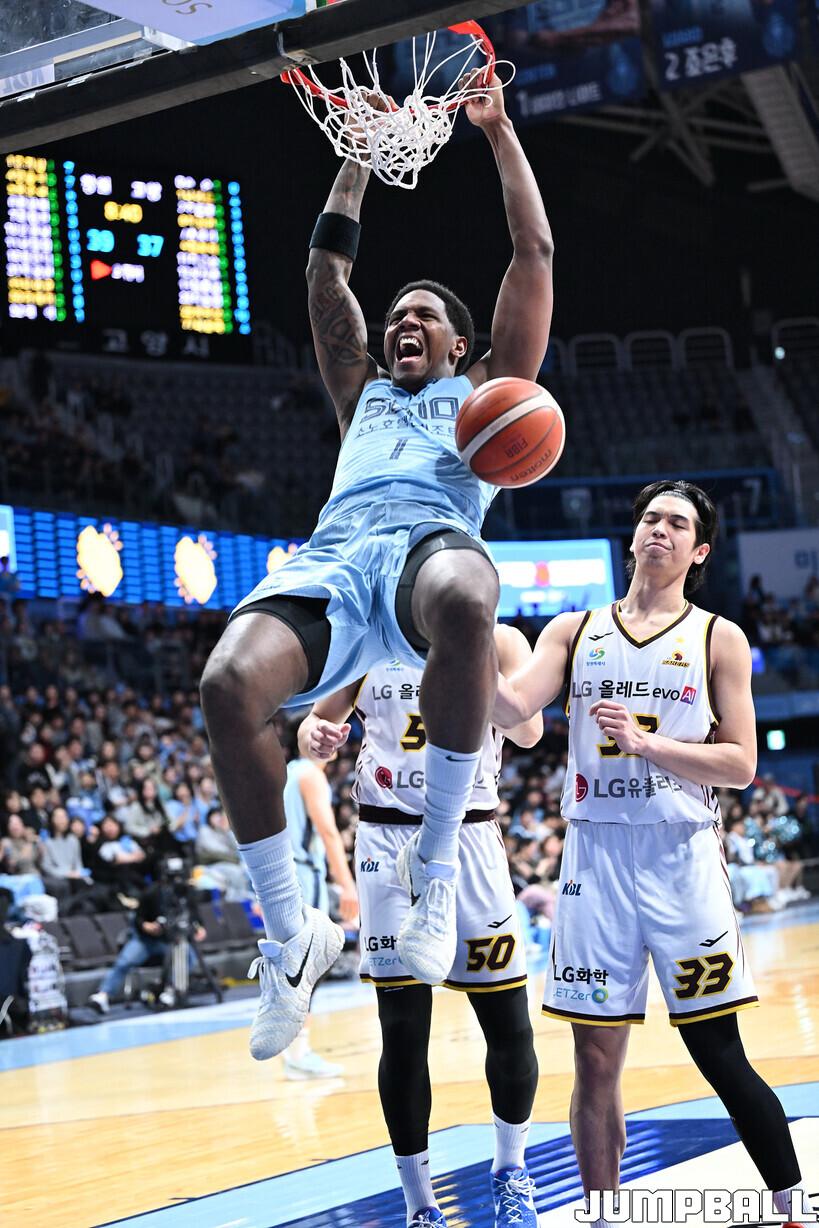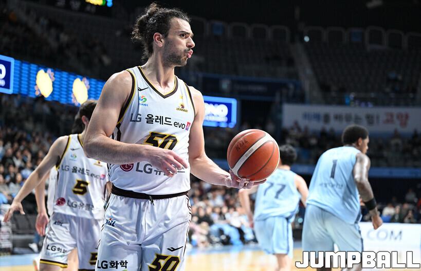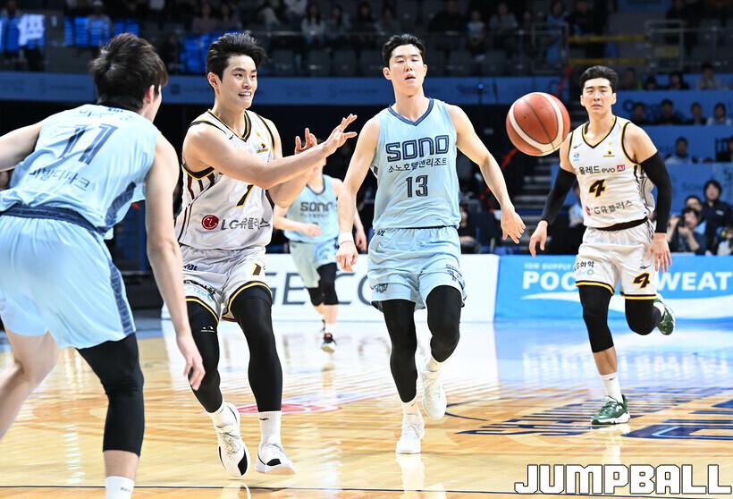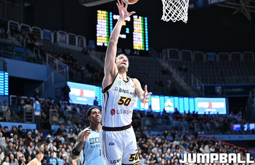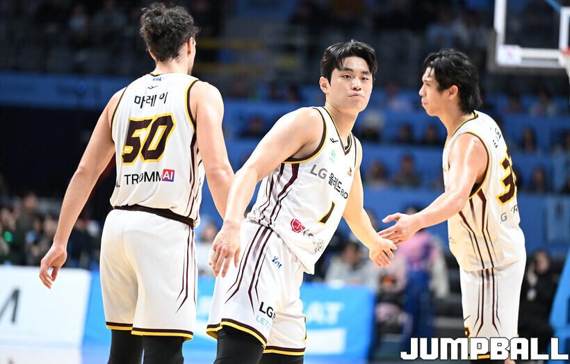 [점프볼=고양/문복주 기자] 창원 LG는 14일 고양 소노 아레나에서 열린 고양 소노와의 2025-2026 LG전자 프로농구 정규시즌 원정경기에서 80-75로 승리했다. LG의 아셈 마레이(23점 21리바운드 10어시스트 2스틸)가 개인 통산 2호 트리플더블을 작성했고, 유기상(13점 3점슛 4개 4리바운드 2스틸)과 양홍석(15점 3리바운드 2어시스트)도 제 몫을 했다.