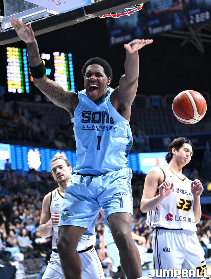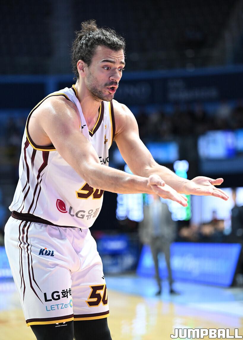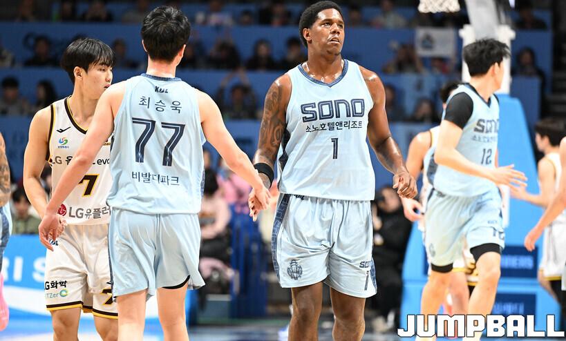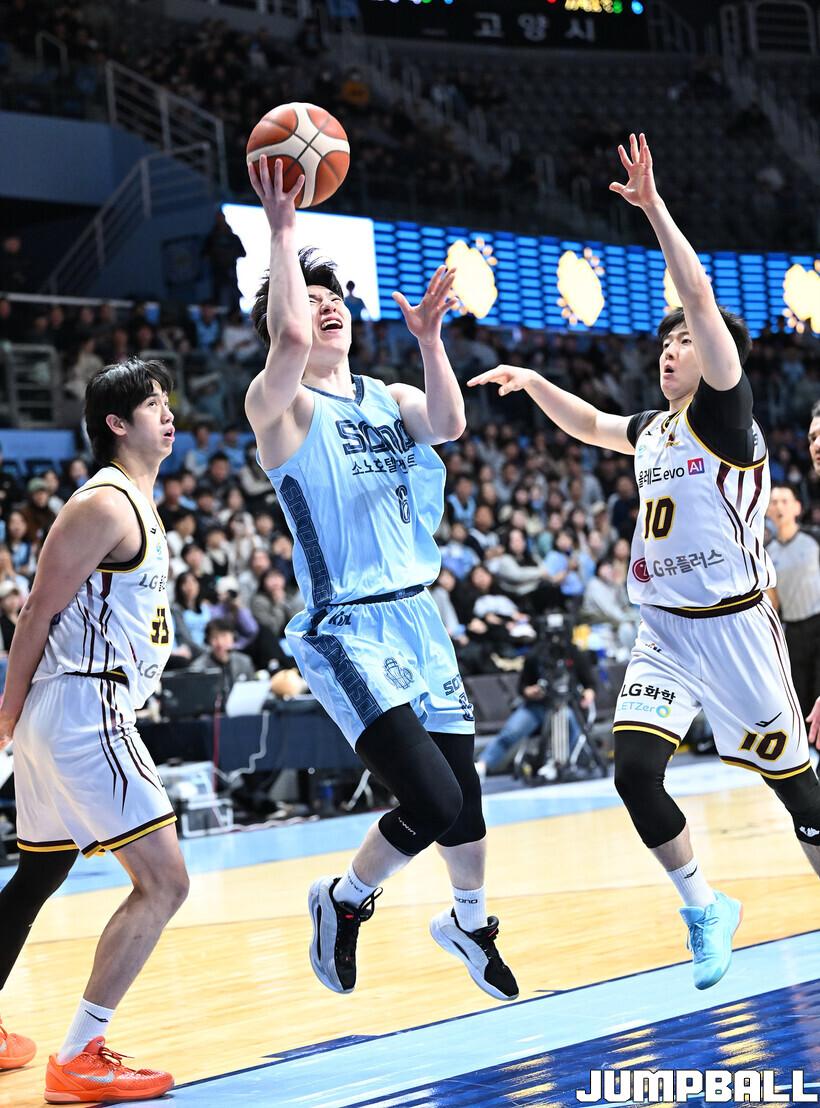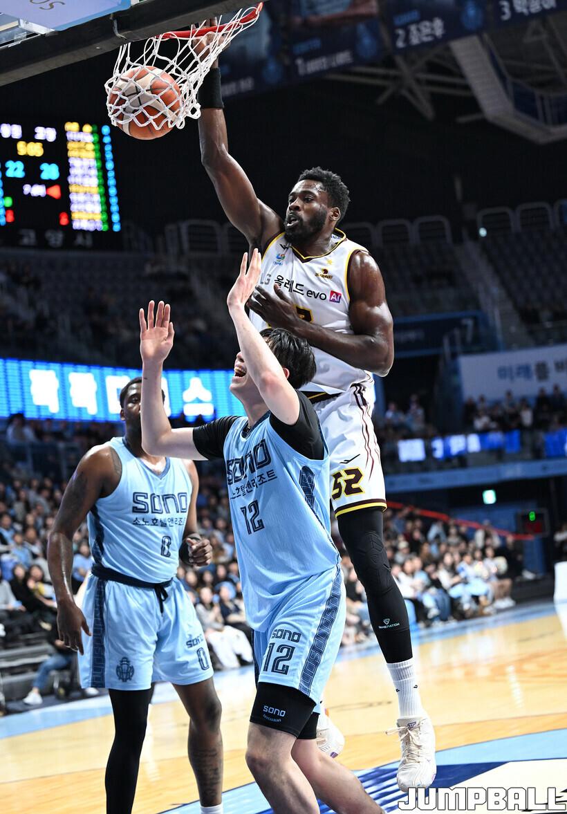 [점프볼=고양/문복주 기자] 창원 LG는 14일 고양 소노 아레나에서 열린 고양 소노와의 2025-2026 LG전자 프로농구 정규시즌 원정경기에서 80-75로 승리했다. LG의 아셈 마레이(23점 21리바운드 10어시스트 2스틸)가 개인 통산 2호 트리플더블을 작성했고, 유기상(13점 3점슛 4개 4리바운드 2스틸)과 양홍석(15점 3리바운드 2어시스트)도 제 몫을 했다.