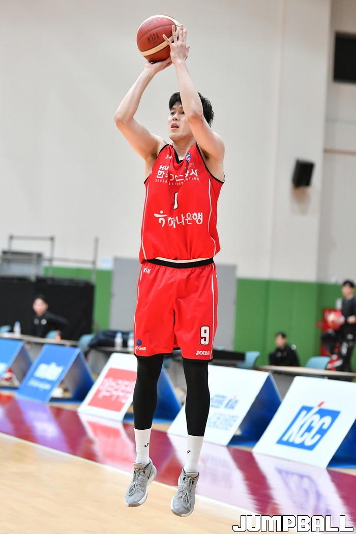 24일 이천 LG챔피언스파크 실내농구장에서 열린 2021-2022 KBL D리그 한국가스공사와 DB의 경기. 한국가스공사 전현우가 3점슛을 던져 득점을 하고 있다.
